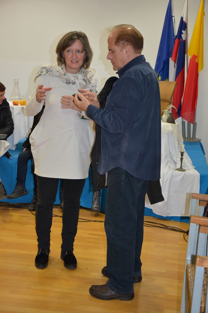 Ura in pol „uradne“ proslave oziroma razgovora z našim gostom je minila „kot bi pihnil“, a ob okusnih prigrizkih smo se vsi z veseljem zadržali še na neformalnih druženjih. Občinstvo je bilo namreč silno pestro, saj so se domačinom pridružili številni obiskovalci iz kulturniških krogov iz bližnjih krajev. Tako, na primer, Andrej Rozman ni bil edini nosilec priznanja Prešernovega sklada, saj je bil z nami še dobitnik istega odličja iz igralskih krogov Vladimir Jurc. Poleg njega pa še nekaj drugih znanih igralcev in posameznikov iz soseščine, ki jim kultura veliko pomeni in zamudijo le redke dogodke.