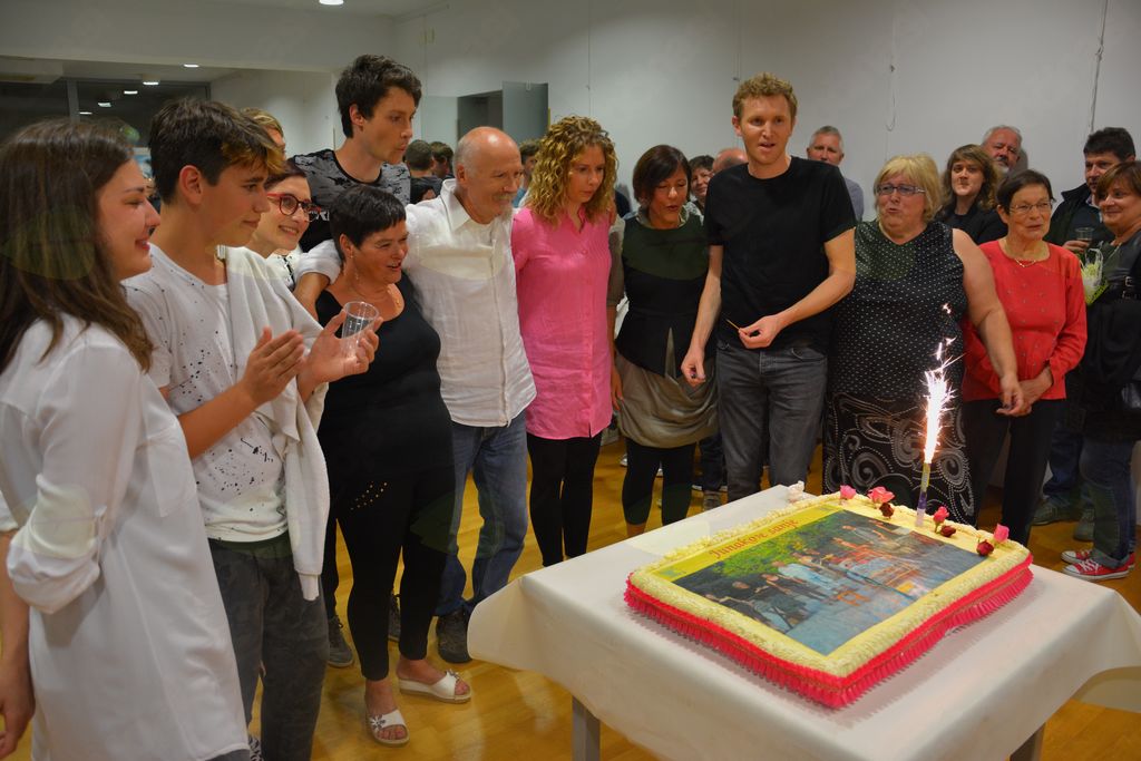 Strahovi, da gledalci ne bodo sprejeli drugačnosti izziva, so se ob navdušenem ploskanju ob zaključnih priklonih razblinili, in družno smo se oboji, igralci in občinstvo podali na zakusko, ki jo je Društvo Simon Jenko Temnica pripravilo v dvorani objekta Šole. Krona večera je bil razrez torte velikanke s sliko članov dramske skupine.