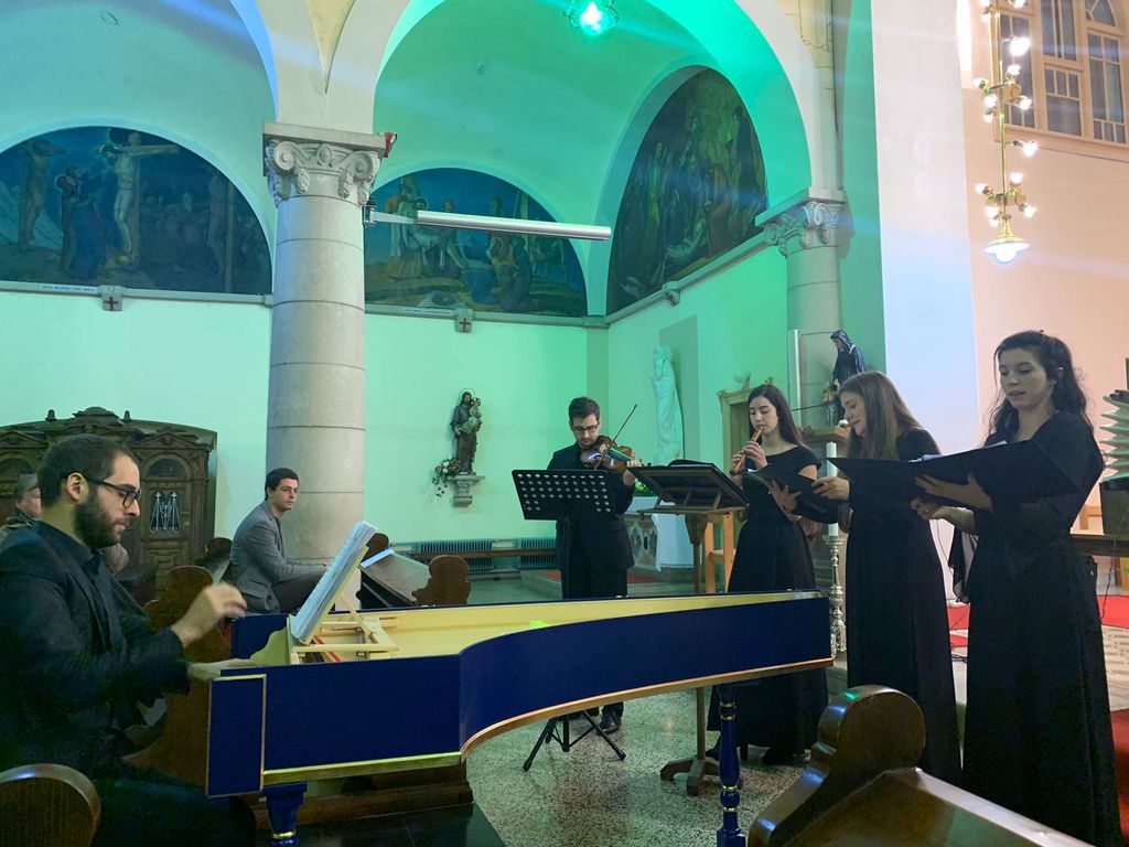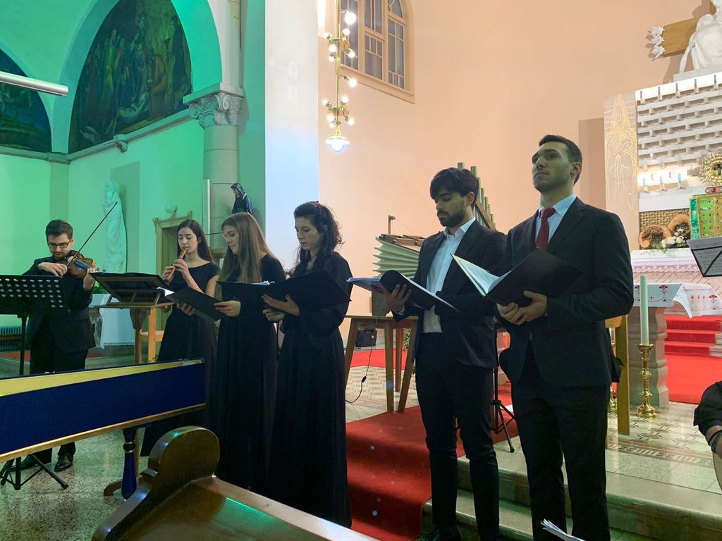 Ansambel je bil ustanovljen leta 2018 in se ukvarja predvsem s staro glasbo. Na sporedu koncerta je prevladala baročna sakralna glasba. Čudovita in zelo posebna skladba je Schmelzerjev »Lamento« ob smrti cesarja Ferdinanda 3., najzanimivejša pa sta bila oratorija skladatelja Giacoma Carissimija »Salomonova sodba« in »Romariji na poti v Emaus« na dveh svetopisemskih zgodbah. Ansambel, ki ga vodi Roberto Squillaci, je tako sestavljen: 4 glasovi, flavta, violini, baročna harfa, baročna kitara, orgle, regal, čembalo, čelo, kontrabas. Primorsko orgelsko društvo, ki je dogodek organiziral, želi poudarjati orgelsko in glasbeno kulturo na Primorskem ter spodbuditi mirno in pozitivno sodelovanje med narodi in kulturami na ozemlju bivšega avstrijskega primorja. Društvo ima svoj sedež v Zdravščinah pri Gorici, člani so pa iz obeh straneh meje, Slovenci in Italijani. Društvo namerava valorizirati zgodovinske inštrumente ter njihovo vzdrževanje. Sodeluje tudi pri izdelovanju novih pomembnih inštrumentov (nove baročne orgle v Zdravščinah, nove velike orgle v koprski stolnici).