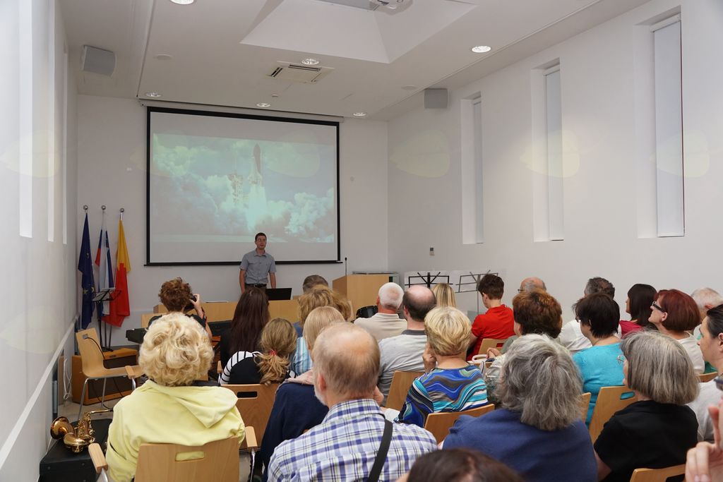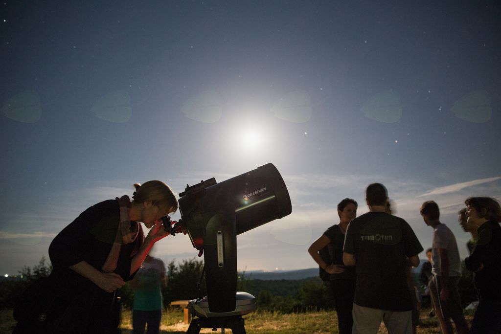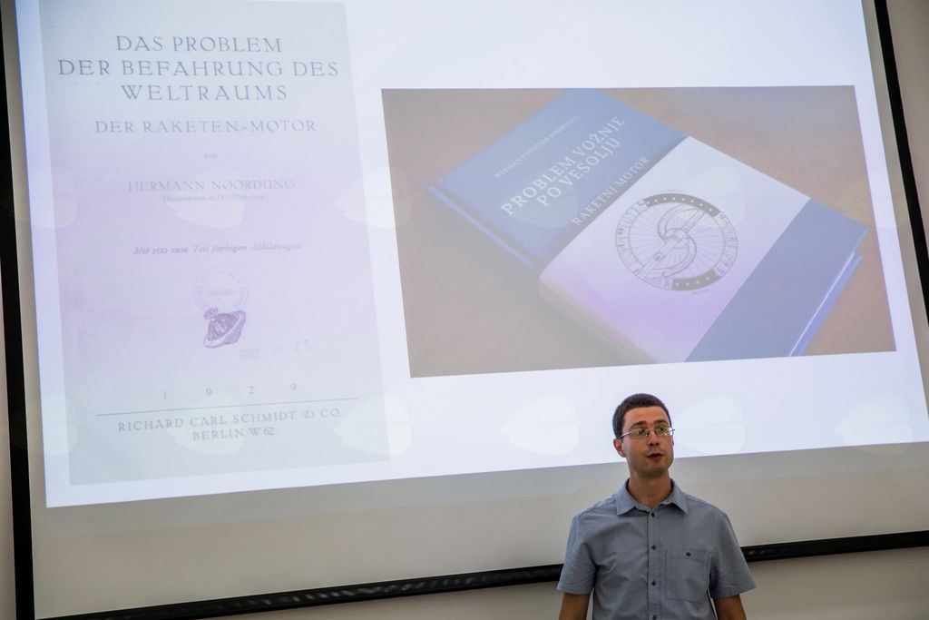 V petek 7. julija se je na Cerju odvijal astronomski večer ob glasbi, ki ga organiziramo mladi iz Kulturnega društva Stanko Vuk, letos že tretje leto zapored in izjemoma v sodelovanju z ZRC SAZU. Na začetku nam vreme ni bilo najbolj naklonjeno, zato smo se preselili v malo konferenčno dvorano v notranjosti pomnika. Po uvodni skladbi, ki jo je izvedla violinistka Sara Gorkič smo lahko poslušali predavanje Andreja Brešana o življenju in delu slovenskega pionirja astronavtike Hermana Potočnika-Noordunga.
