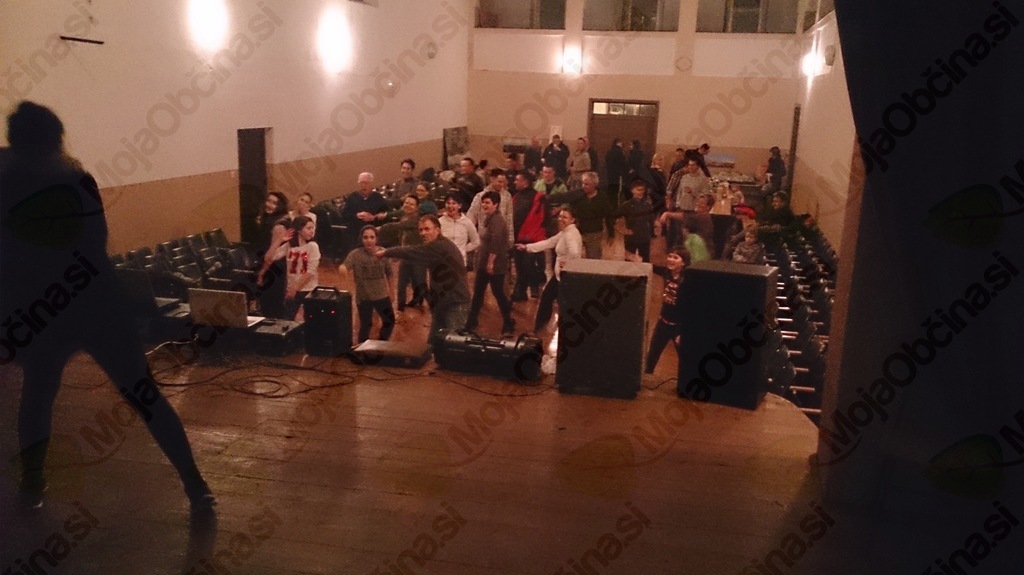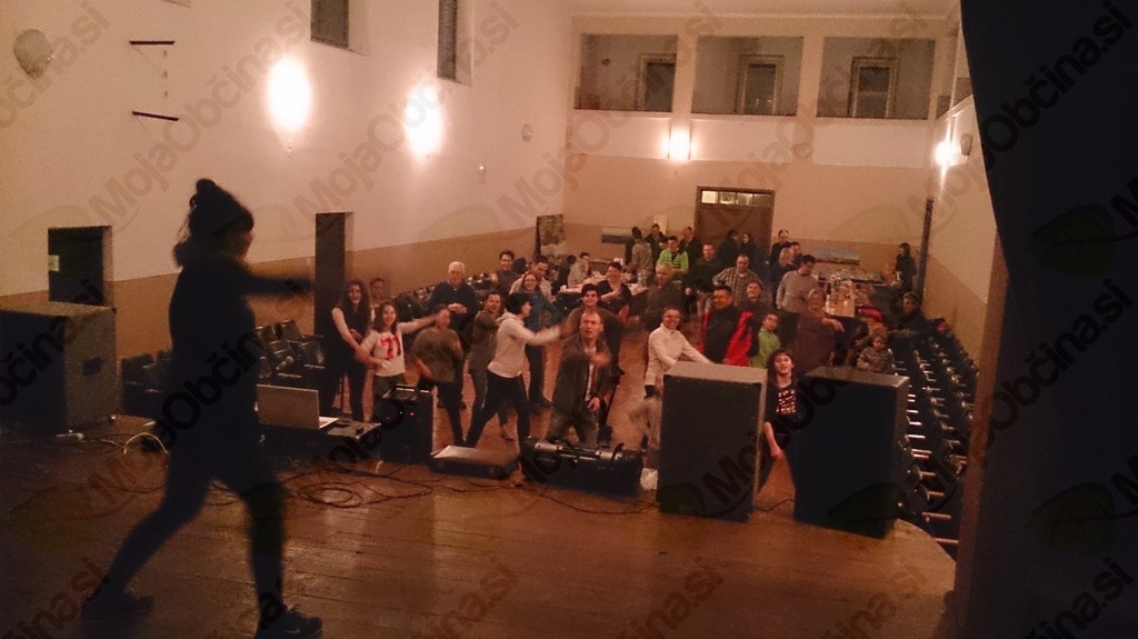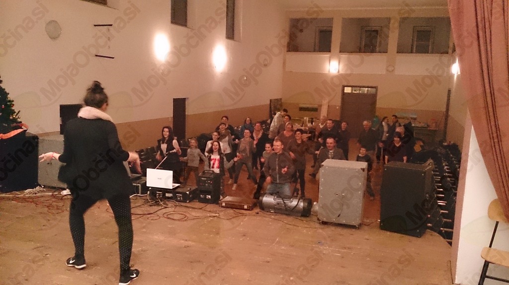 Ko so se po dvorani razlegli prvi takti glasbe, so najpogumnejši odšli na plesišče in kmalu je plesala večina, kar nekaj udeležencev druženja pa je raje modrovalo pred dvorano. Za največ smeha med plesalci – od prvih razredov osnovne šole pa do upokojencev - je poskrbela Mateja, ko nas je zbrala in učila plesa Gangnam Style. Zanimivo je bilo videti naše gibanje, ko smo eni hiteli v levo, drugi že zaključevali korak v desno, tako, da so nas na koncu plesa bolele mišice, vendar trebušne in to od smeha. Mateja nam je pokazala še korake za angleški valček in za ča-ča-ča, mi pa smo ji pridno sledili in se učili.