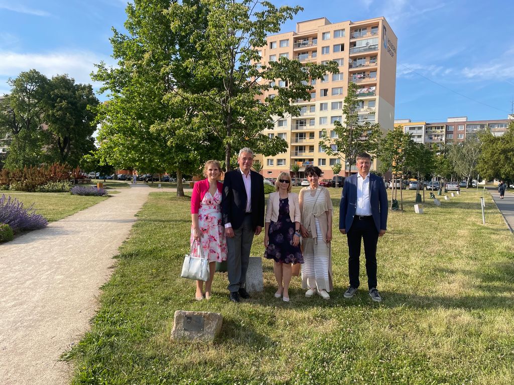 Protoklarnemu pogovoru in izmenjavi vsebin, ki lahko, tudi ob pomoči predstavništva države v Pragi, nadgradijo doslej stkane vezi med slovensko in češko občino, je sledil ogled veleposlaništva in čudovitage parka, v katerem ima posebno mesto čebelji panj. Izkazalo se je, da smo pri izbiri protokolarnega darila imeli srečno roko, župan je namreč veleposlanici ob prihodu izročil Kogojevo »slovensko čebelo«.