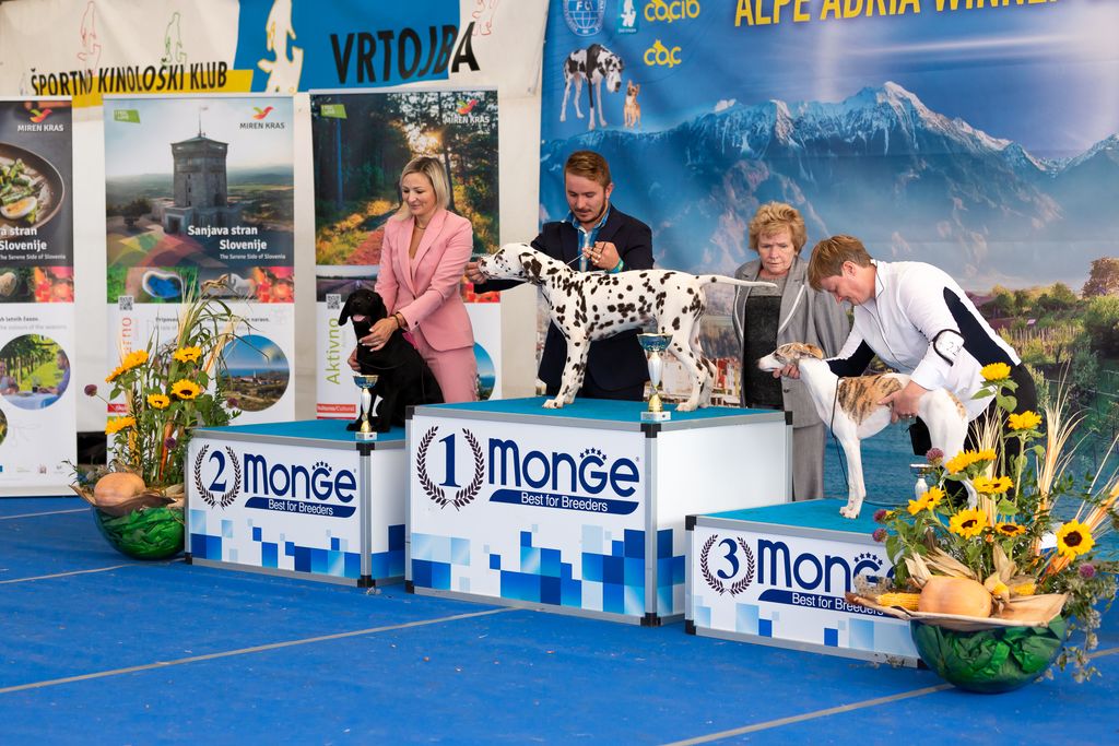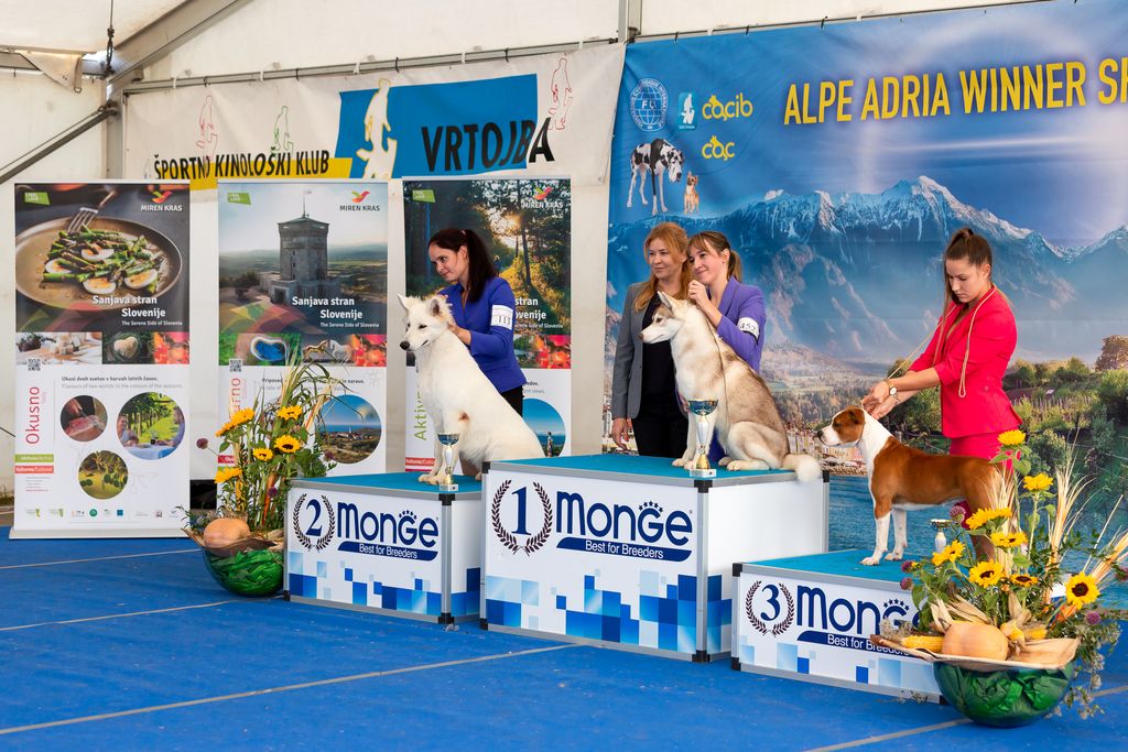 Lento je prejel pes pasme ameriška akita: TIP TOP LINE LIKE THE WIND OF CHANGE, lastnika JELIĆ VLATKA iz Hrvaške. Drugi najlepši pa je bil beli višavski terier: GUGLIELMO DEI MELOGRANI, lastnice SARTORI MARIAE MADDALENE iz Italije.