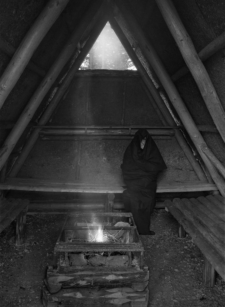 Še zdaj ne vem, kaj me je gnalo takrat na Pohorju pred leti, da sem posnel Miranov portret v temačnem »holcarskem« bivaku, zavil ga v črno raševino in obraz izrisal le kot ozko režo v tem zapredku. Zakurila sva ogenj na ognjišču in dim se je sukljal na plano skoz trikotno lino kot vibe iz njegovih slik.