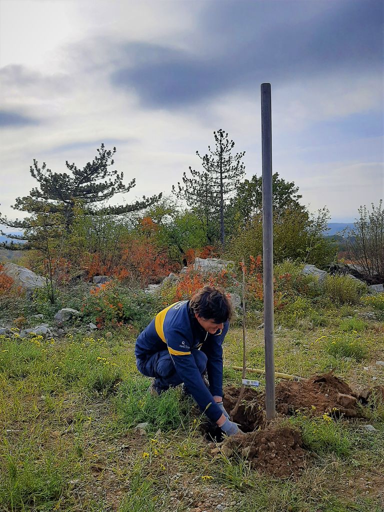 Poleg finančne podpore projektu v sodelovanju s Fundacijo Vrabček upanja, ki je namenjena nabavi 100 sadik dreves, so v petek, 12. 11. 2021, na Cerju pustili tudi osebni pečat: predstavniki zaposlenih v Novo Nordisk Slovenija na čelu z direktorjem, so zavihali rokave, prijeli za krampe in lopate ter na izbranih mestih pod strokovnim nadzorom Boštjana Košička iz Zavoda za gozdove Slovenija, posadili 5 skoršev in 10 črnih hrastov. Plemenita akcija podjetja je dragocen prispevek k sanaciji pogorišča in obnovi pljuč planeta ter ponovni vzpostavitvi habitata za številne živalske vrste, ki so na Cerju zaradi izjemno bogate biosfere, pod zaščito Nature 2000.