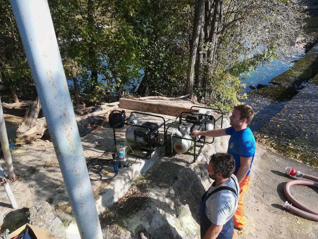 Spomladi je v sklopu preventivnih dejavnosti potekala delovna akcija preverjanja delovanja opreme. Ker po dežju pride sonce, toda tudi po soncu pride zmeraj dež, smo na orehovskem jezu (rošti ) preverjali delovanje motornih črpalk, električnih pretočnih črpalk in agregatov. Preventivni pregled vključuje pregled olja, goriva, tesnil, filtrov; sledi poskusni zagon.