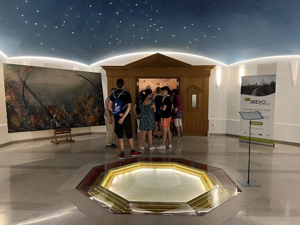 Študente in prostovoljce iz društva Association Europe En Berry Touraine, ki redno vzdržuje vezi prijateljskih mest, sta v pomniku sprejeli predstavnici Turizma Miren – Kostanjevica, Nika Leban in Sara Baša ter vodnik Konrad Marušič. Gostom smo predstavili zgodbo pomnika, zgodovino Slovenije ter tragedijo soške fronte preko zgodovinskih zbirk, umetniških razstav in slik Rudija Španzlja. Zvedavi in vidno ganjeni mladi in starejši, ki so Pomnik miru obiskali ravno v času vojne v Ukrajini, so z zanimanjem sledili opisom dogajanja in radovedno postavljali vprašanja. Vodenje so zaključili na razgledni ploščadi, kjer so s pogledom zaobjeli lepote Slovenije in se sprehodili do stičnih točk s sosednjimi Italijo, Hrvaško in Avstrijo ter razmislili o brezsmiselnosti vojne.