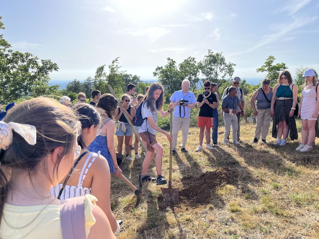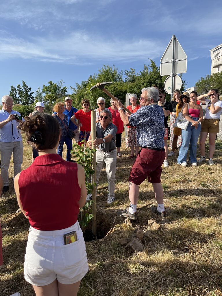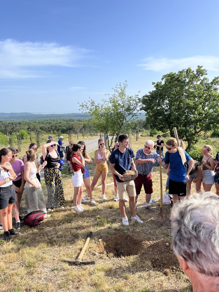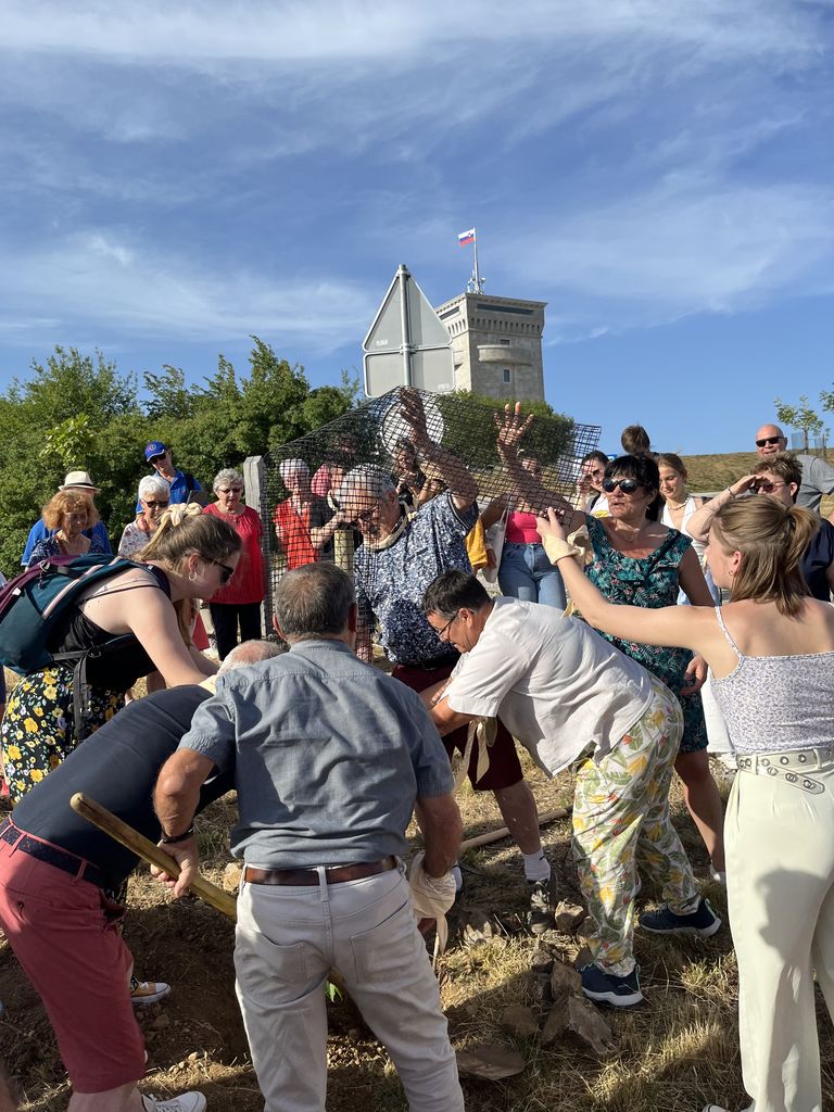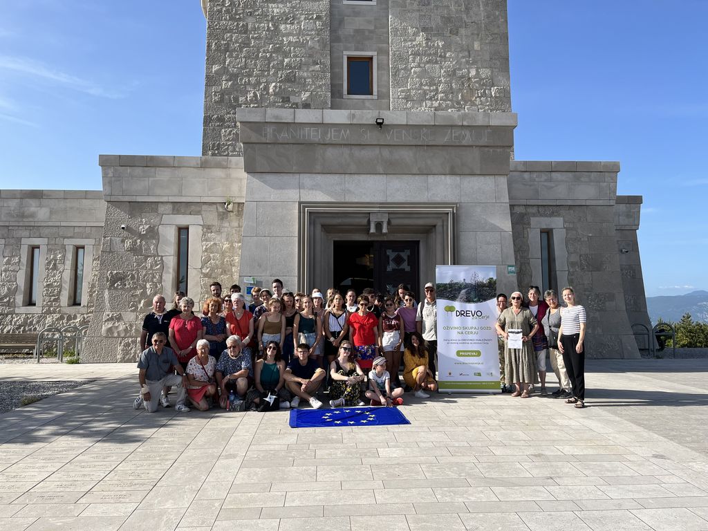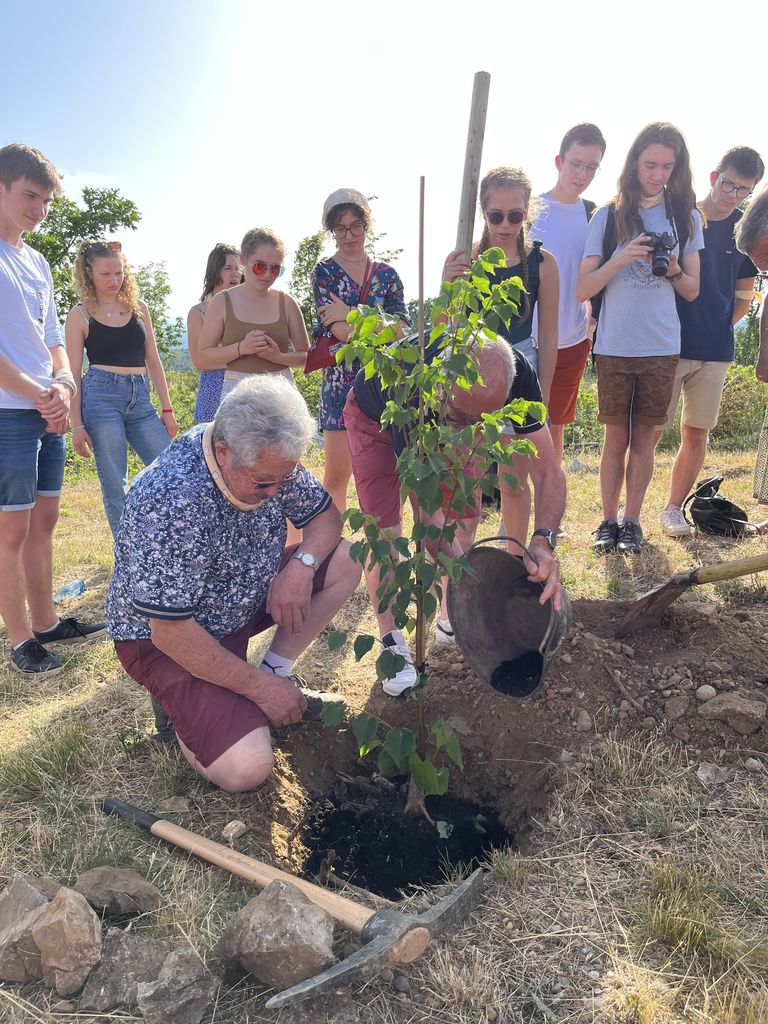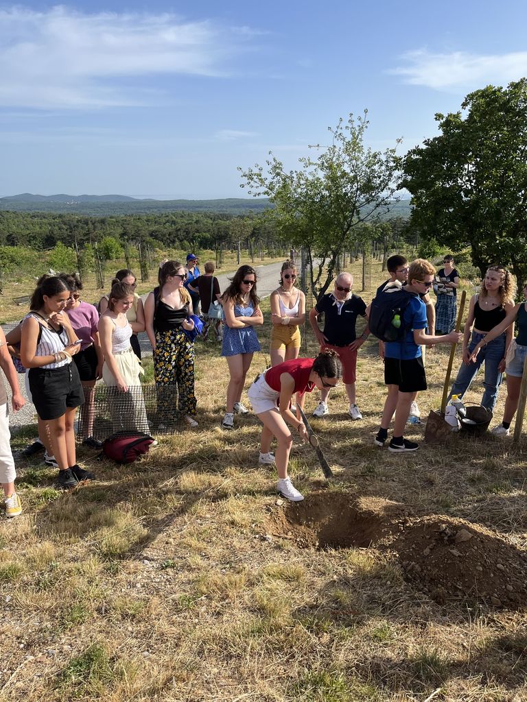 Po izobraževalnem delu je prisotne pred Pomnikom čakala lipa, simbol slovenstva. Študentje so prevzeli sadiko, zemljo, gnoj, orodje in vodo ter se podali v Drevored, da s posaditvijo novega življenja simbolično zaključijo obisk Cerja. Za večino prisotnih je bilo to prvo sajenje drevesa, zato jim je z nasveti pomagala Nika, na pomoč pa so priskočili tudi starejši prostovoljci, ki so med kopanjem jame na kamniti kraški podlagi mladim kolegom predstavili postopek pravilne saditve drevesa in jih spodbujali k sodelovanju. Študentje so si navdušeno izmenjevali lopato ter iz jame pobirali kamenje.