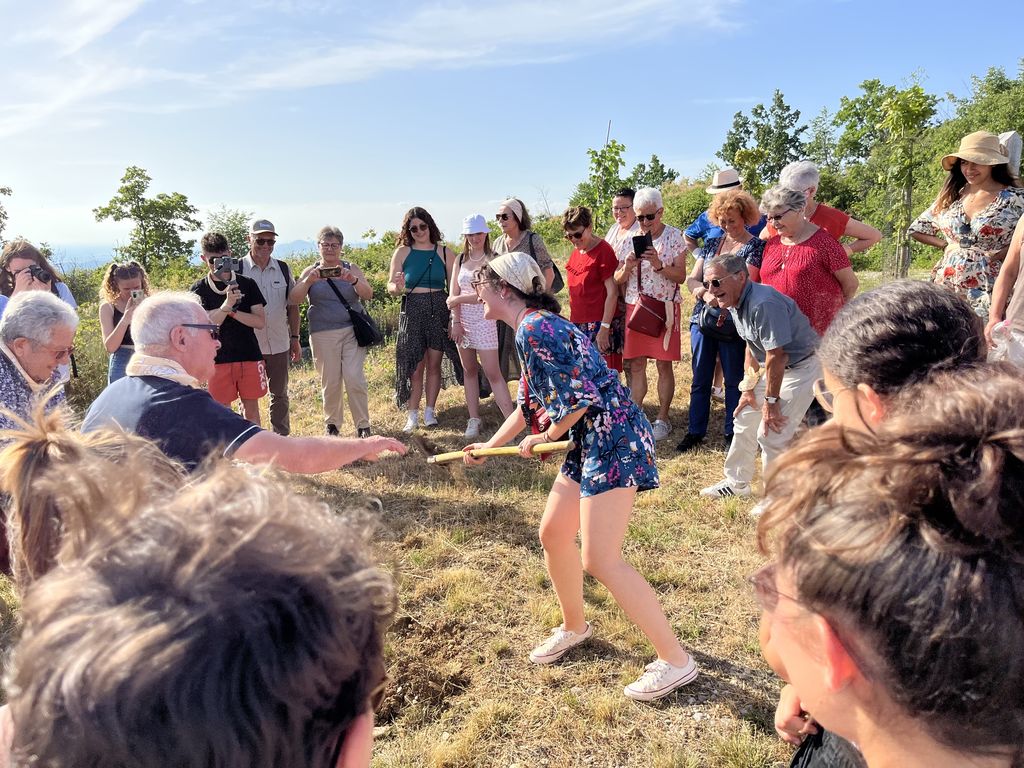 Ko so posajeno drevo obilno zalili, je okrog stebla vsak izmed njih postavil kamen, si nekaj zaželel ter mu simolično prišepnil misel ali nekaj zapel. Nika je društvu in Občini Komen predala zahvalo za donacijo in za eno izmed najbolj simpatičnih, pristnih in izvirnih sajenj kar jih je doživel Drevored hvaležnosti na Cerju. Zadovoljni z lepo preživetim dnem, ki je poleg poučne nosil tudi zeleno noto, so druženje zaklučili v Okrepčevalnici Cerje in nato polni novih vtisov pot nadaljevali v osrčje Krasa.