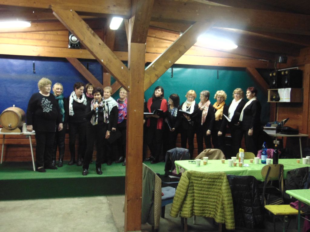 Pevski zbor Društva žena je začel veseli večer s pesmimi na temo grozdja in vina, ga. Kocjančič pa je prebrala dve pesmi na to temo. Za dobro razpoloženje sta poskrbeli naši članici Francka in Pepca s skečem o uporabi pametnega telefona za potrebe "facebooka".