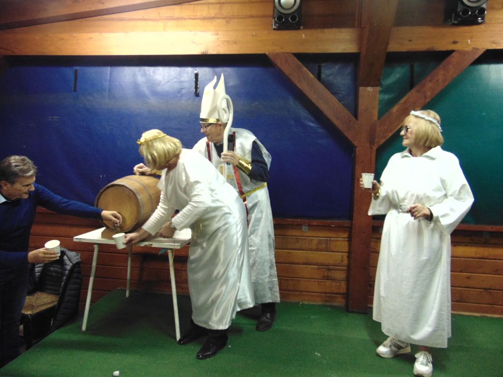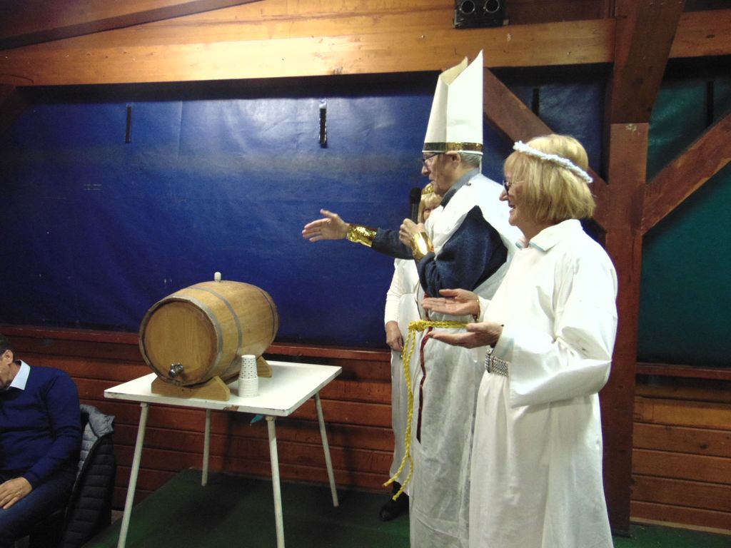 Vrhunec večera pa je bil prihod sv. Martina v spremstvu dveh pomočnic. Po ustreznem nagovoru in krstu v narečni latinščini je mošt spremenil v vino. Pojasnil nam je tudi, kaj pomeni kratica VINO ( Vedno In Nikoli Obilno), kar smo vsi navdušeno pozdravili.