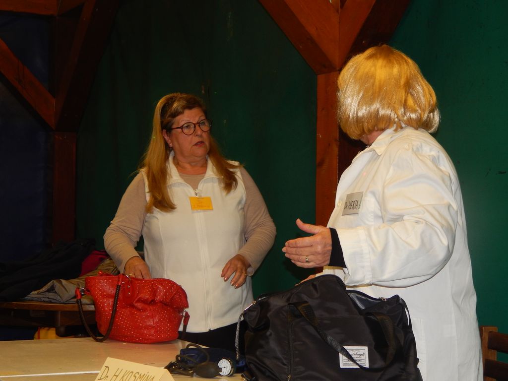 Po martinovi večerji pa je sledil še skeč, v katerem so se predstavile dr. Herta K., dr. Petrović J. in njuna pacientka gospa S.. Dr. Herta je sicer odhajala v penzijo, zato je v delo uvajala pravkar uvoženo dr. Petrović, ki je svoje znanje slovenskih medicinskih izrazov pridobila iz dr. romanov in z gledanjem Gorskega zdravnika. S skupnimi močmi sta uspeli diagnosticirati zdravstne težave gospe S. in jo tudi ustrezno založiti s primernimi medikamenti. Veseli skeč je ustrezno zaokrožil prvi del večera in poskrbel za obilo dobre volje.