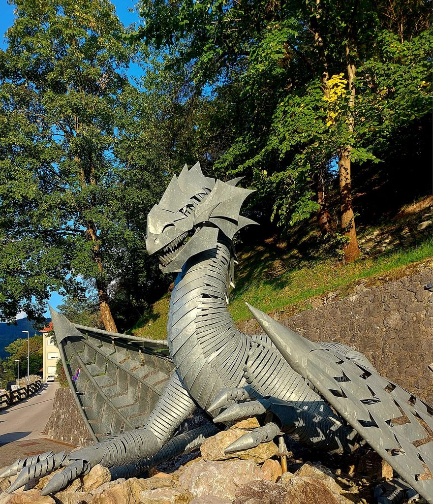 S postankom za osvežitev, se je zaključil naš izlet. Domov smo se odpravili mimo Borovelj in preko Ljubelja do Tržiča. kjer smo se ustavili na poznem kosilu ali zgodnji večerji. Tudi v Tržiču stoji zmajeva silhueta.