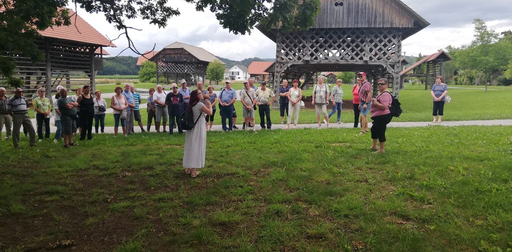 Nato smo se odpravili v muzej kozolcev, napravo za sušenje sena in ostalih kmečkih pridelkov. Vsi kozolci so mojstrovine, bili so postavljeni v okolici in preneseni v naravni obliki na razstavni prostor. Postavljajo jih tesarski mojstri, nekaj je kritih s slamo – rženo pa krovci, ki jih je v Sloveniji le še nekaj. Razstavljenih je 21 kozolcev in vsak ima svojo zgodbo.