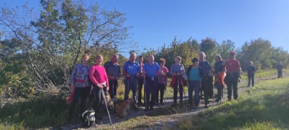 V torek, 7.oktobra se nas je pred bivšo šolo zbralo dobrih dvajset navdušencev, tretjina Vojščičanov, ostali iz sosednih vasi – približno pol žensk, pol moških. Pavlo je pripeljal še psička. Vreme je bilo idealno za pohode. Podali smo se mimo Tabra po cesti za Vale in nato zavili proti Govcem. To je bila gozdna cesta, ki nas je vodila večina skozi borov gozd. Ko smo se povzpeli na Govce, smo ob lepem razgledu na Monfalkon, preko Cerja videli zasnežene Dolomite, Julijske Alpe in pod Kraškim hribovjem naše vasice, če ne v celoti pa vsaj cerkvene zvonike.