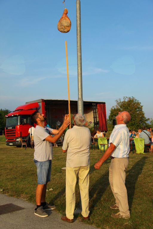 Tudi letos ni manjkalo vznemirjenje ob čakanju na srečni dobitek, le da je običajno tombolo nadomestilo »šacanje« pršuta. Ugibanje o višini pršuta so spremljali kot vedno odlični domači bleki iz Gostilne Makorič, pecivo naših pridnih gospodinj ter zvoki harmonike in roga, ki smo jim veselo pritegnili s petjem. Tako smo preživeli še en lep vikend v družbi prijateljev od blizu in daleč in ves trud za pripravo praznovanja je bil bogato poplačan.
