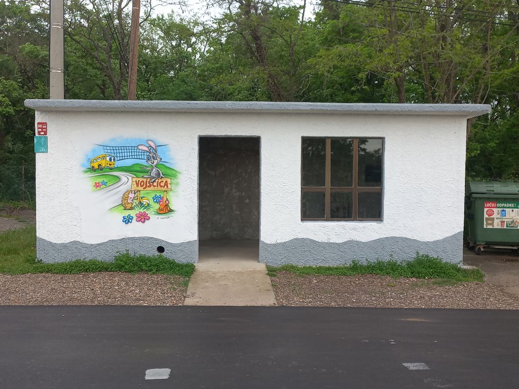 Sprali smo fasadi teh ter ju na novo prepleskali. Padla pa je ideja, da ju olepšamo z grafitnima slikama. K izdelavi teh smo povabili znanega grafitarja g. Izidorja Fiegl, ki je prisluhnil našim željam in na čakalnicah upodobil krasna grafita iz katerih so razvidne tudi nekatere znamenitosti vasi – vzpetina Tabor in športni park Dolina.
