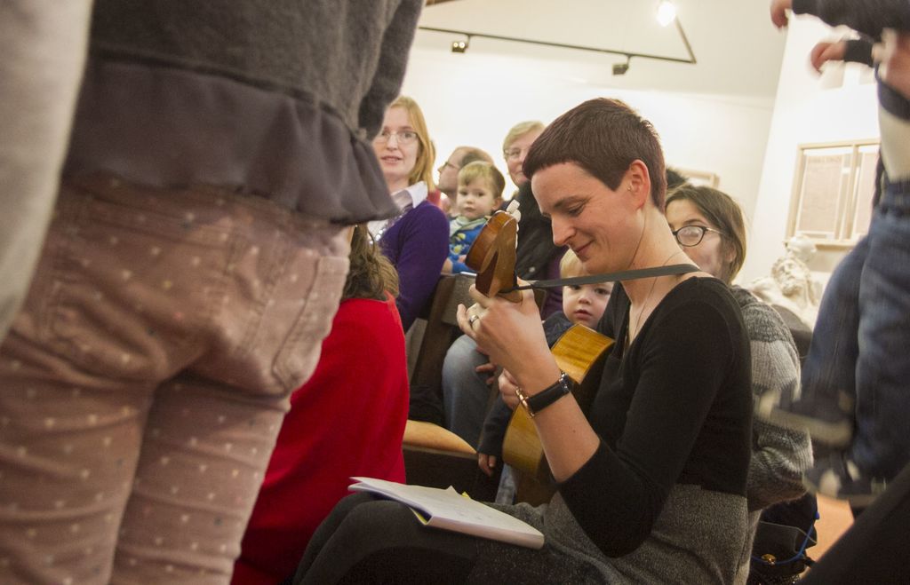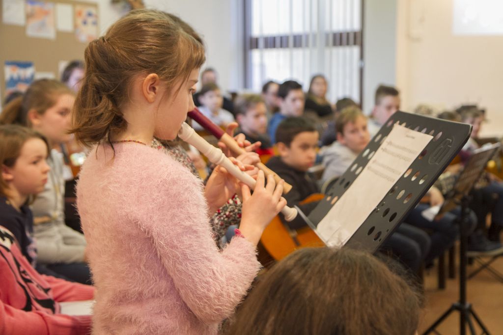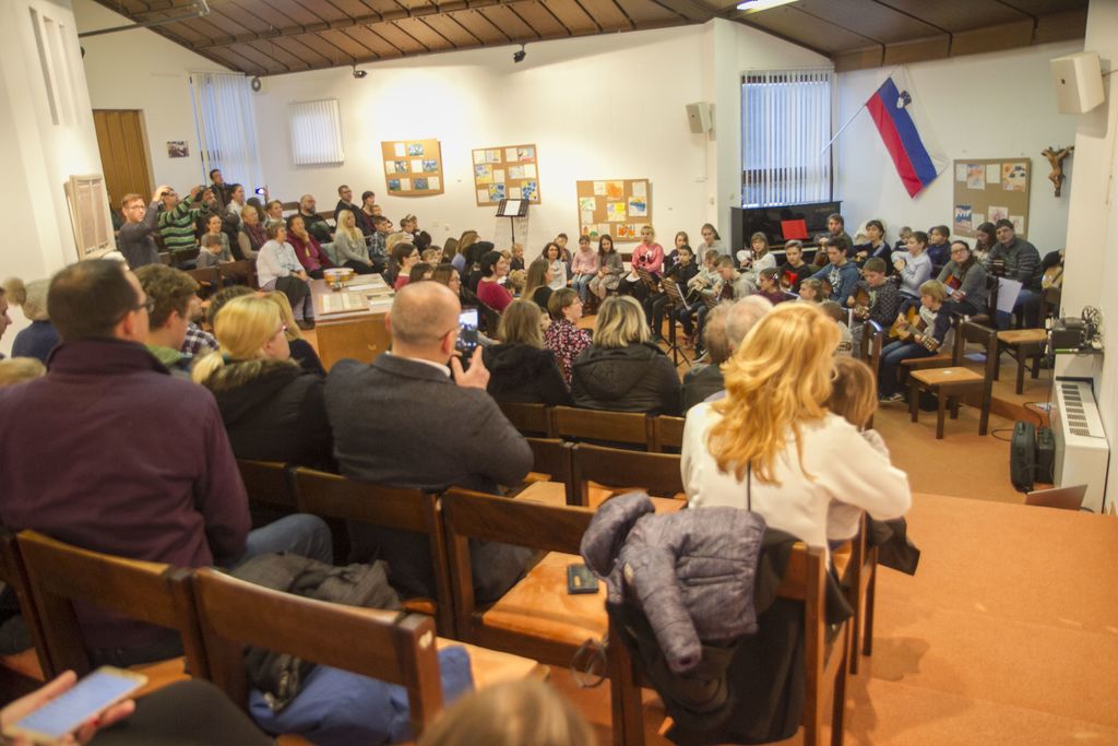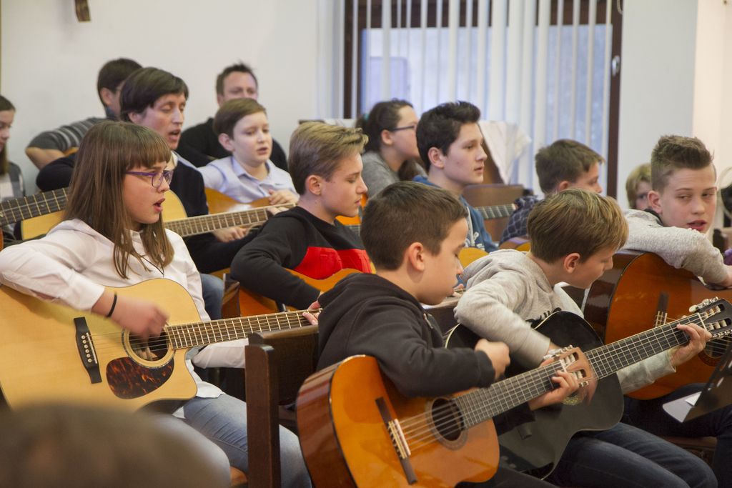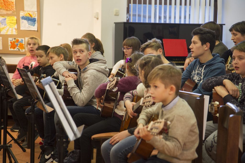 Mladi glasbeniki, ki prihajajo na učenje kitare, klavirja in flavte so poskrbeli, da je dvorano med prireditvijo napolnila melodija starih ljudskih pesmih, ki so nam še danes pri srcu.