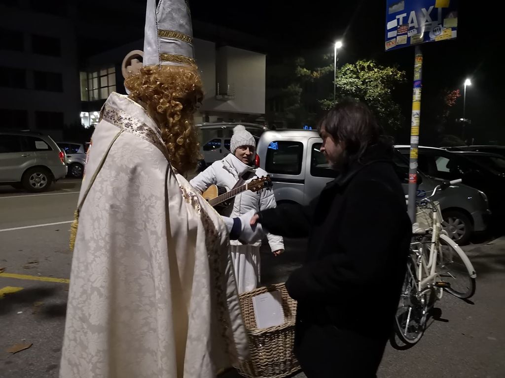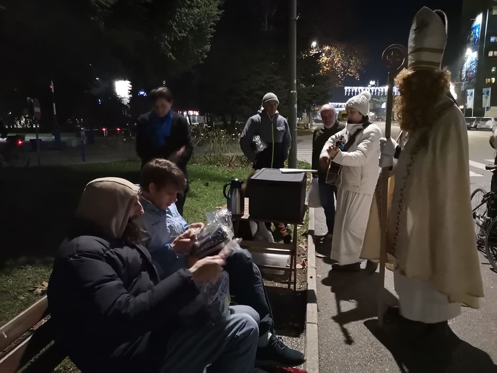 Tudi brezdomci v Novi Gorici so lahko občutili delček pravljičnega vzdušja, ko jih je v četrtek, 5. 12. 2019 obiskal sv. Miklavž v spremstvu angelov in v družbi nekaterih prostovoljcev, ki pomagajo pri deljenju toplih obrokov brezdomcem v parku pri avtobusni postaji.