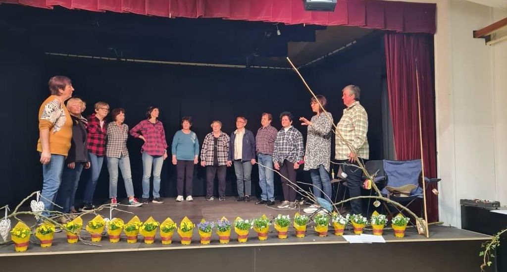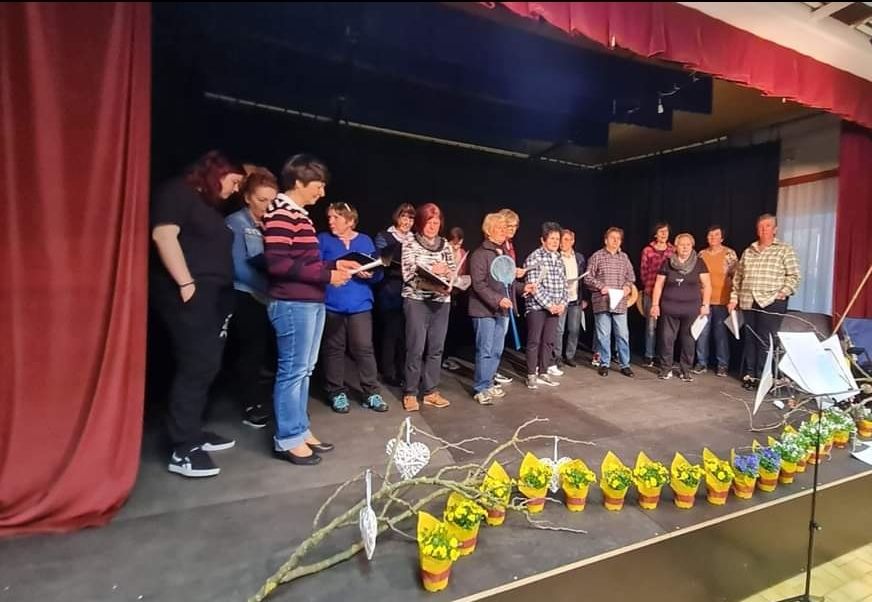 Vokalna skupina Glas, ki deluje pod vodstvom zborovodkinje Ingrid Praznik smo 1.aprila na prvi ribolovni dan priredile koncert z naslovom Prvoaprilski koncert. Večer je bil nadvse zabaven saj smo nastopajoče naše obiskovalce dodobra nasmejale in napolnile z dobro voljo. V goste smo povabile Vokalno skupino Vogirnke, ki deluje pod vodstvom zborovodkinje Ingrid Praznik. Ja, kar nekaj pevk je šlo že zjutraj na ribolov, zato smo se spraševale ali bo koncert sploh izvedljiv. Pa so se le pojavile, ena po ena pevka je prišla. Zborovodkinja Ingrid Praznik je tako zavzeto ribarila, da je pozabila pogledati na uro. In ker je bila pozna, je na koncert prilomastila kar skozi okno, še v ribiški odpravi, v obleki pa je imela še kar nekaj bršljana, verjetno se je potikala po grmovju ob reki Vipavi. Pred nastopom smo imele kratke skupne upevalne vaje, ki so potekale kar na odru, pred zvesto publiko. V goste smo povabile tudi zavzetega ribiča, ki nam je povedal kako poteka prvi ribolovni dan. Med predstavo ni manjkalo niti ubranega petja gostujoče skupine in gostiteljic. Večer je bil nadvse zabaven in sproščujoč. Takih večerov se še veselimo.