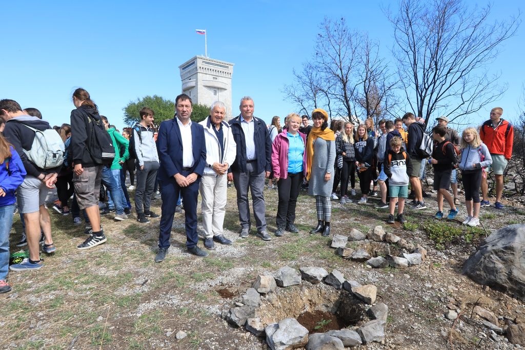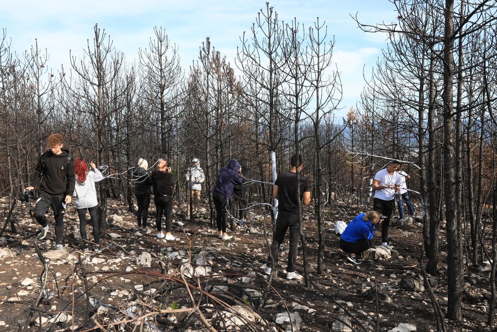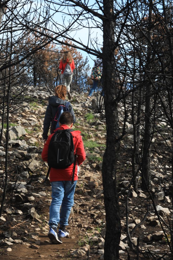 Skupina dijakov se je podala na pohod po poteh miru mimo pogorišča na Cerju. Pogled, ki nas je pretresel. Mir, tišina in nežni zeleni poganjki, ki napovedujejo novo življenje. Prav tu smo na pogorišču posadili prva drevesa, ki jih je poklonil Oskar Kogoj, industrijski oblikovalec iz Mirna. Tako smo se prvi pridružili projektu Drevo za Cerje.