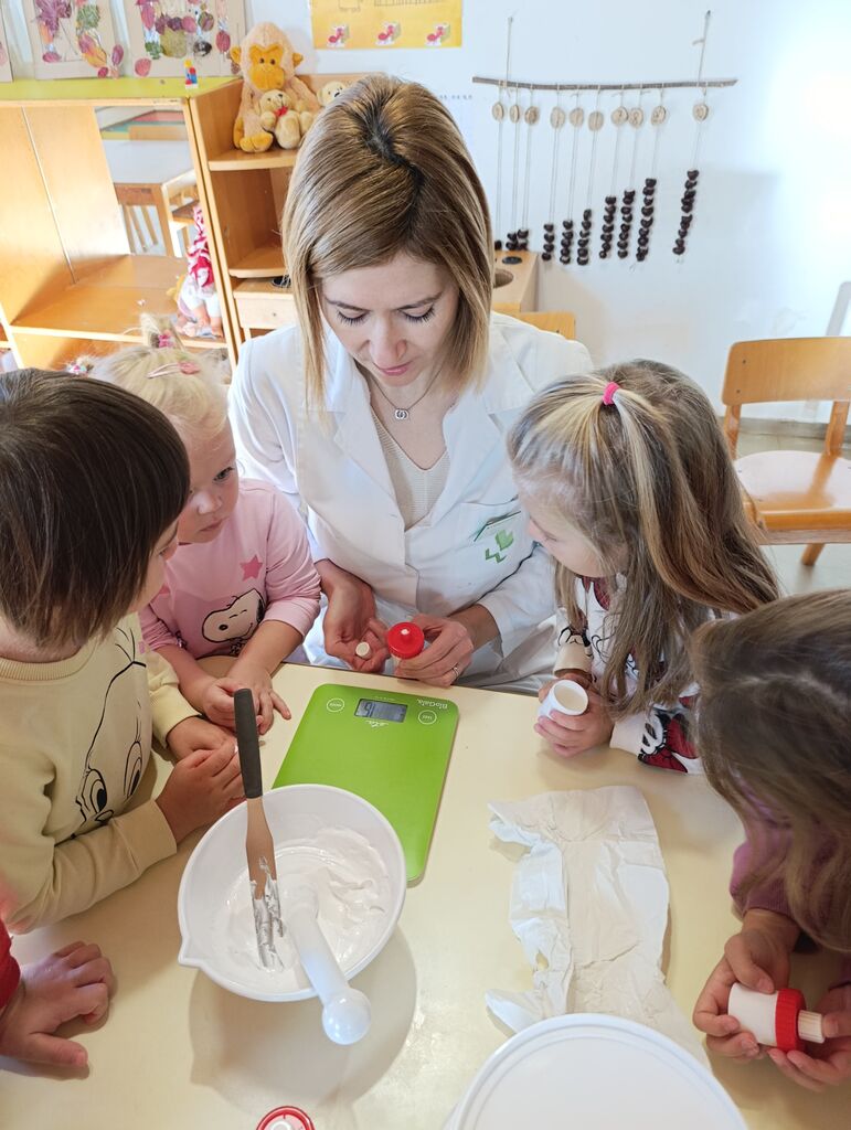 Hvala mamici Ivi za predstavitev svojega zanimivega poklica in prijetno popestritev naših vrtčevskih dni. Mogoče pa je katerega od nas navdušila in se ji bo čez nekaj let pridružil v lekarni.