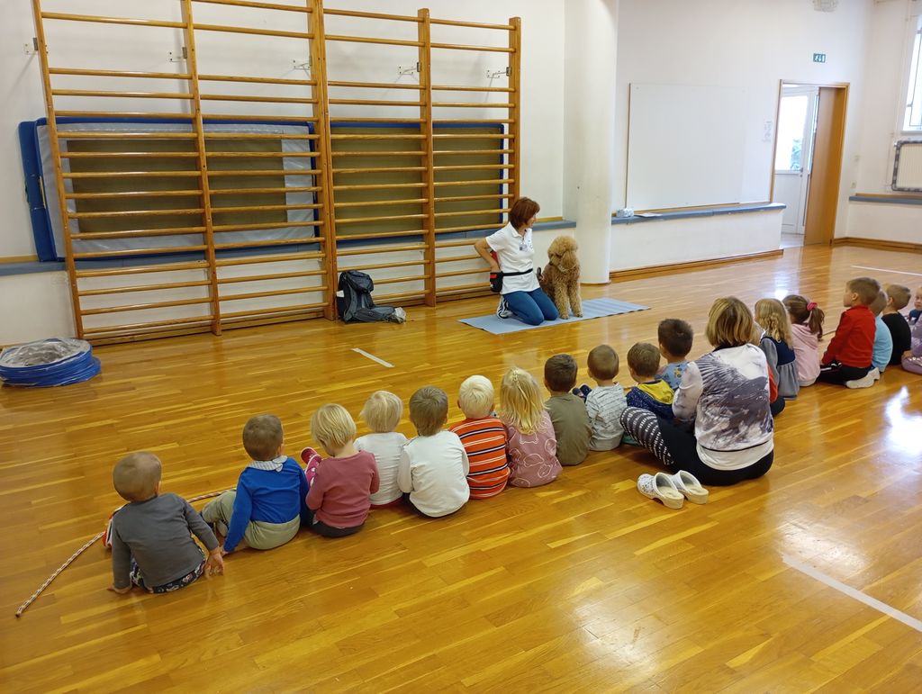 Otroci in strokovne delavke vrtca Kostanjevica na Krasu smo se v ponedeljek 14. 10. odzvali na povabilo učiteljice, gospe Nives Zelenjak, in sodelovali pri uri športa s terapevtsko psičko Feli in njeno skrbnico, gospo Lilijano. Otroci so se naučili kako naj ravnajo ob srečanju z nepoznanim psom, da bo spoznavanje potekalo brez nevšečnosti, seznanili so se z delom terapevtskega psa in pokazali svoje spretnosti na gibalnem poligonu. Za organizacijo športne ure se lepo zahvaljujemo učiteljici Nives in gospe Lilijani.