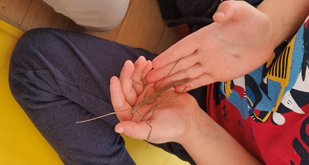 Otroci so spoznali, da je paličnjak nežna žival. Sam nam zleze na roko in ko hodi po naših rokah, nas malo požgečka. Otroci pri tem uživajo in se urijo v nežnosti, potrpežljivosti, opazovanju, skrbi za druge in v spoštljivem odnosu do živih bitij. Res odlična priložnost.