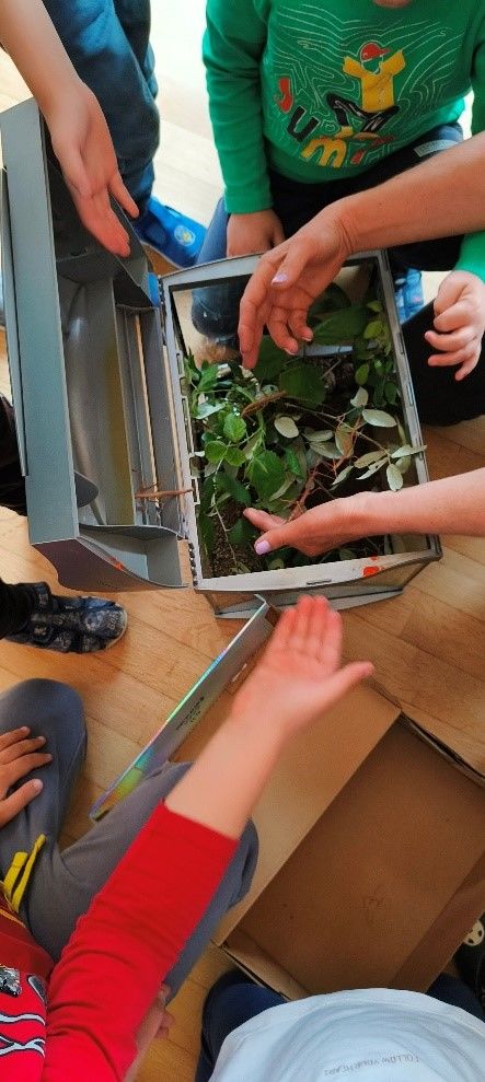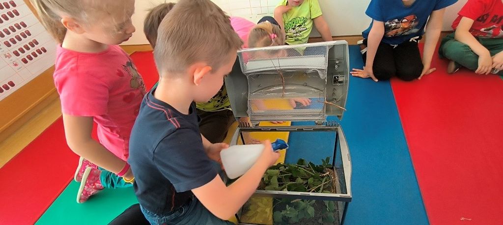 Paličnjakom smo najprej pripravili prostor za bivanje v stekleni posodi. Na dno smo nasuli zemljo, v kozarec pa postavili nekaj robide. Naslednji dan smo dobili 5 paličnjakov. Najprej smo si jih ogledali, nato pa jih spustili v posodo – terarij.