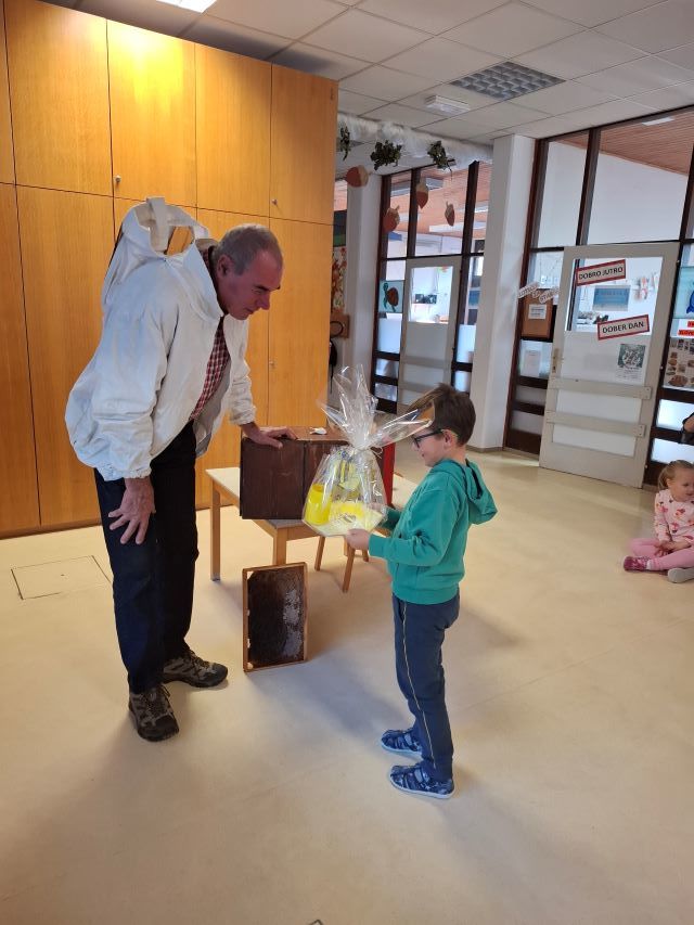 V tednu slovenske prehrane pa vsako leto obeležujemo Tradicionalni slovenski zajtrk. Sestavljen je iz mleka, masla, kruha, medu in jabolk. Letos smo ga zjutraj začeli z obilnim zajtrkom hrane lokalnih kmetij. Praznik smo popestrili z obiskom čebelarja. Otroci so spoznali delo čebelarja, njegove pripomočke ter čebelo od blizu.