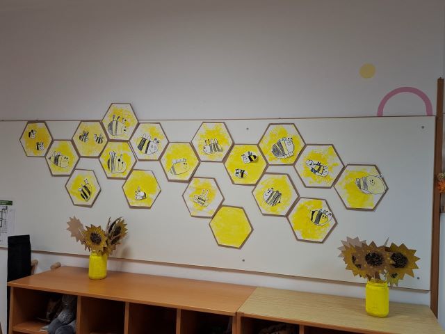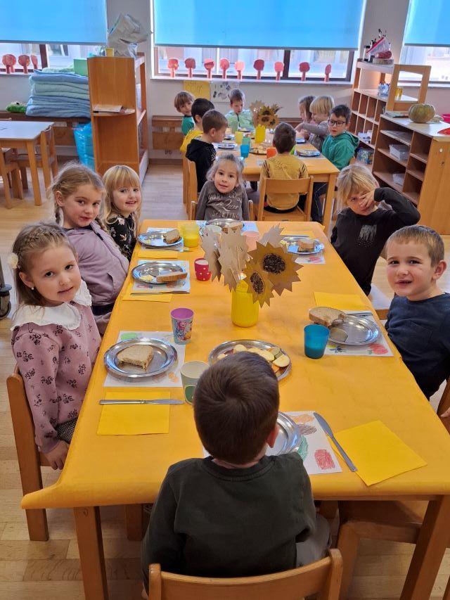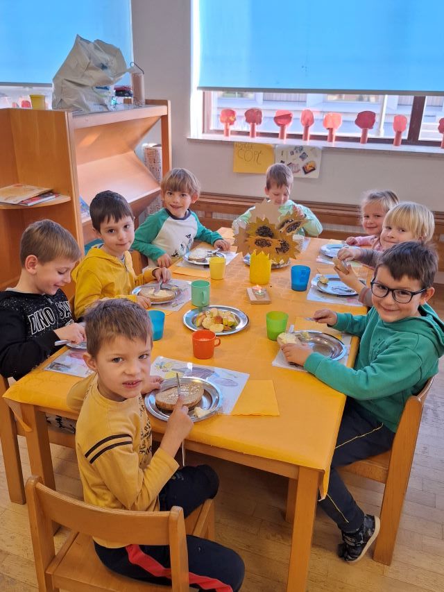 V vrtcu se veliko pogovarjamo o zdravju in pomenu zajtrka. Otroci so poslušali pravljico Čebela Meli, ustvarjali panje in prepevali pesmi.