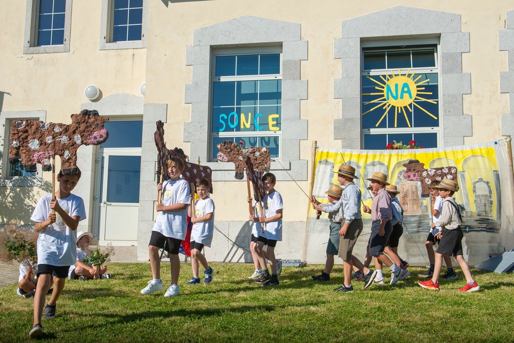Stoto obletnico šole smo praznovali v začetku junija. Prireditev smo naslovili Sonce na Krasu in se tako poklonili kraškemu pesniku Srečku Kosovelu, ki bi letos praznoval 120. obletnico svojega rojstva.