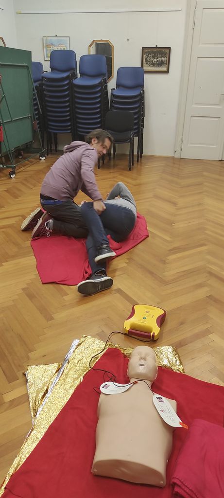Vsak od nas je izpeljal vajo nudenja PP, od ocenitve odzivnosti, masažo srca in umetno dihanje. Pomembno je pravilno izvajati stise na prsni koš in tudi če pride do poka reber, se z oživljanjem nadaljuje.
