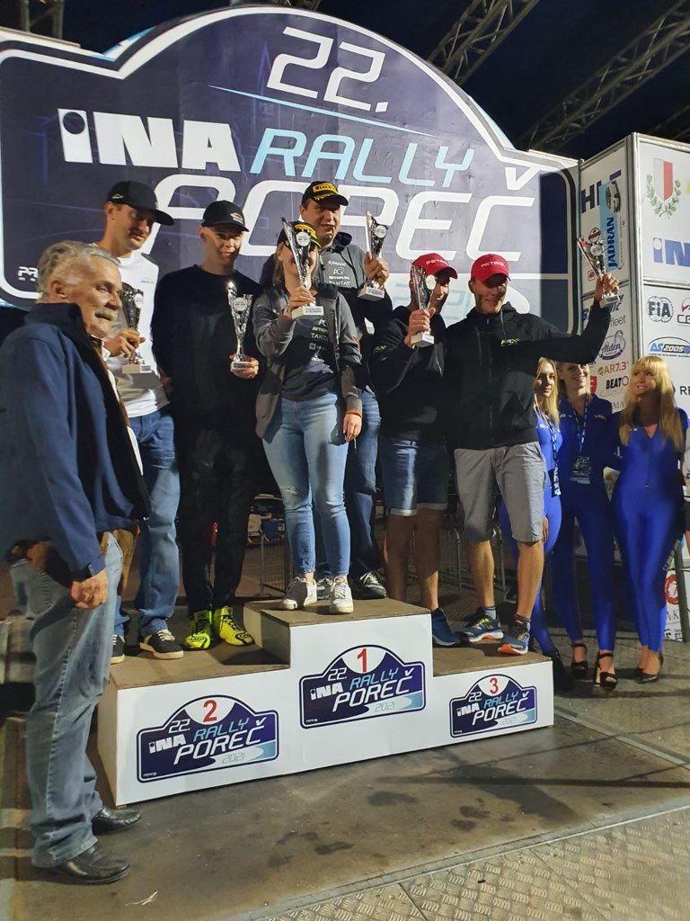 Podobno zadovoljni se iz mednarodnega rallyja v istrskem Poreču vračata tudi posadki Jernej in Gregor Fakin ter Primož Kačič in Aljaž Černigoj. Brata Fakin, doma v okolici Komna, sta s svojo Ford Fiesto rally4 odlično odpeljala dirko in jo zaključila na 3. mestu v diviziji 2 ter na 5. mestu skupno v konkurenci DP Slovenije. Boj s tekmeci je bil ves čas izjemno napet in tesen, kot je v tej skupini že običajno. V cilju je bil njun zaostanek za zmagovalcem divizije 2 Markom Grossijem dobrih 19 sekund, za drugim Markom Škuljem sta zaostala le 4,4 sekunde, a imela pred najbližjim zasledovalcem Janom Medvedom tudi samo 10 sekund prednosti! Zmagovalca rallyja Rok Turk in Vili Ošlaj pa sta bila s svojim Hyundaiem i20R5 za vse ostale razred zase. Dirko pred koncem prvenstva sta tako Jernej in Gregor Fakin še naprej na 2. mestu v Diviziji 2 z 18 točkami prednosti pred Janom Medvedom Izidorjem Šavljem, skupno pa na 3. mestu z 19 točkami prednosti pred Alešem Zrinskim in Rokom Vidmarjem.
