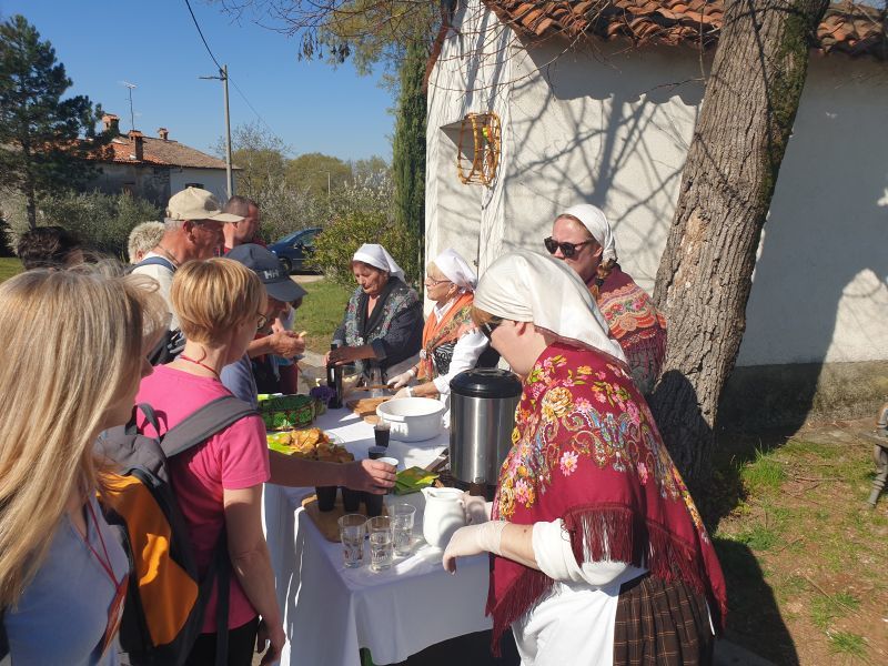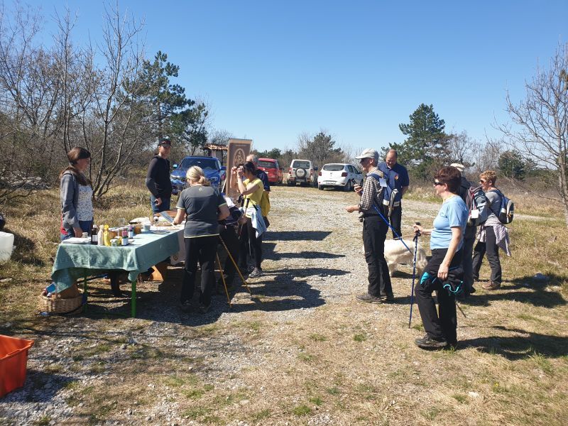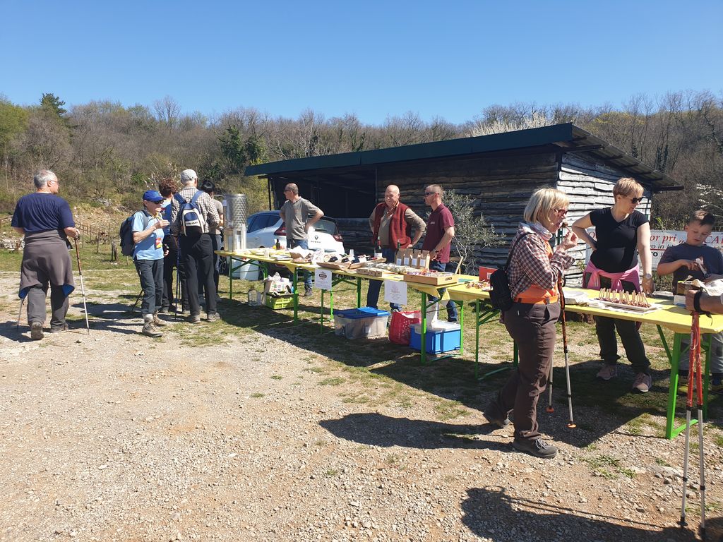 Med samim pohodom je bila udeležencem na voljo degustacija kraških dobrot. Predstavili so se lokalni ponudniki: Gostilna ŠTIRNA iz Opatjega sela z domačimi sladicami, OSMICA PRI KRČARJU iz Sel na Krasu z domačimi vini in suhomesnimi izdelki, Društvo žensk ŽBRINCA iz Opatjega sela z kraškim zajtrkom, »šnite in cikorja«, TURISTIČNO-OLJKARSKO DRUŠTVO I. SVIT KRAS iz Lokvice z degustacijo oljčnih olj, EKOLOŠKA KMETIJA FRANCETOVI iz Nova vasi z kozjim sirom in domačo salamo, API CARSTICA iz Opatjega sela z kraškim medom in izdelki iz sivke, VINARSTVO IN KLETARSTVO BUNTOVI iz Škrbine z kraškimi vini in likerji ter domačimi čaji, ČEBELARSTVO FURLANI iz Volčjega Grada z kraškim medom, vinarja TRAMPUŽ iz Temnice in FABJANI iz Kobdilja z kraškimi vini, pridelovalca oljčnega olja: Kmetija Zavadlal iz Vojščice in Jožef Spačal iz Kostanjevice na Krasu.