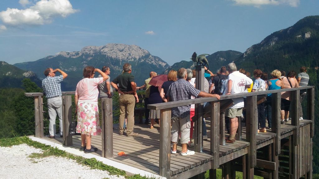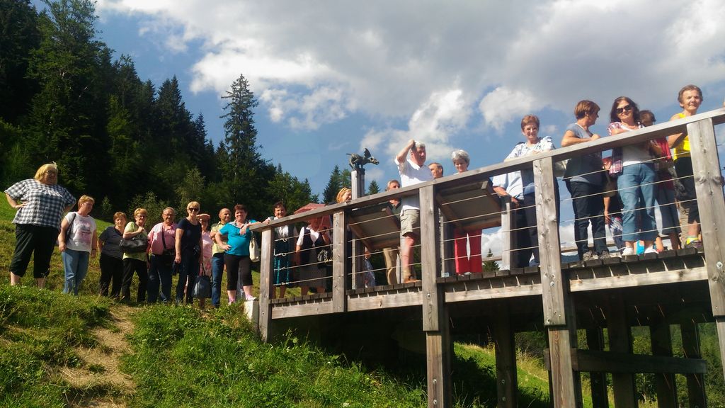 Po kosilu v planšariji Logarski dom nas je vodič Nejc popeljal še do slapa Rinka – drugega najmogočnejšega slapa pri nas, ter po delu Solčavske panoramske poti. Tam smo lahko uživali v veličastnih razgledih na okoliške vršace ter v slastnih dobrotah visokogorske kmetije Klemenšek – savinjskem želodcu, suhih klobasah, marmeladah, itd ..