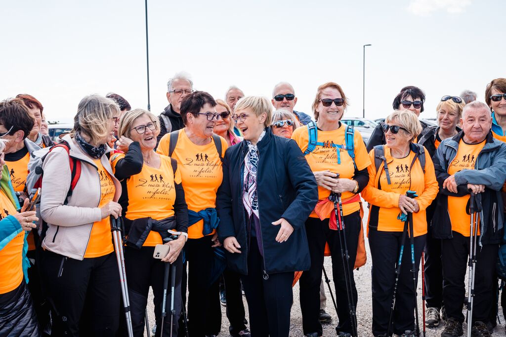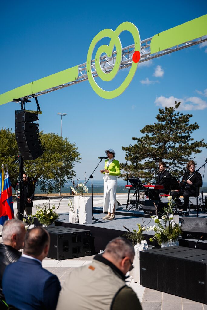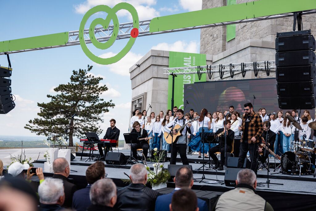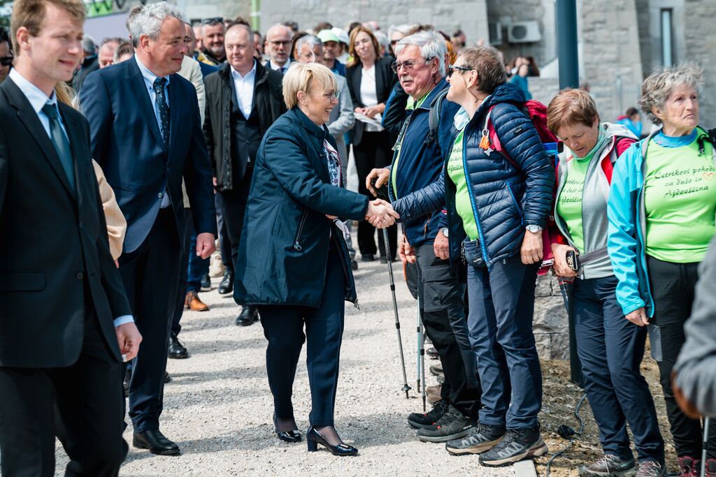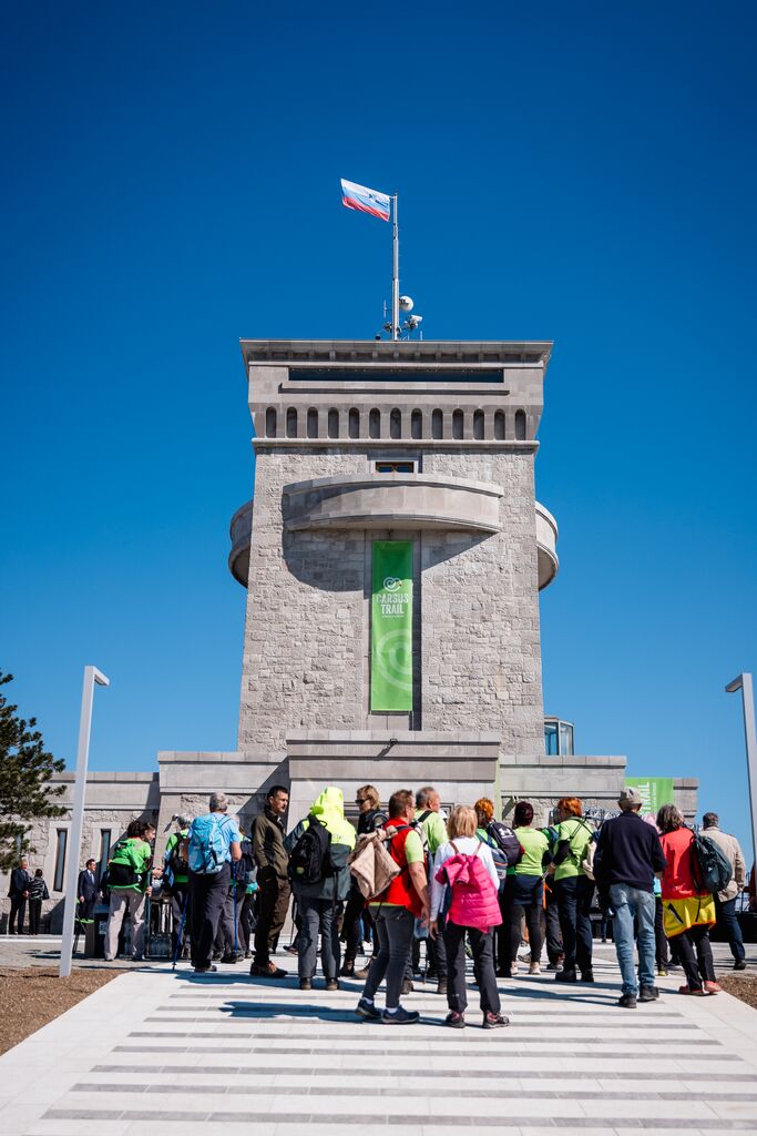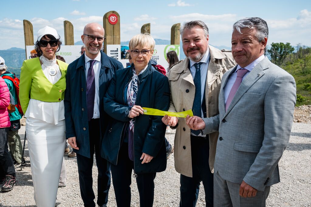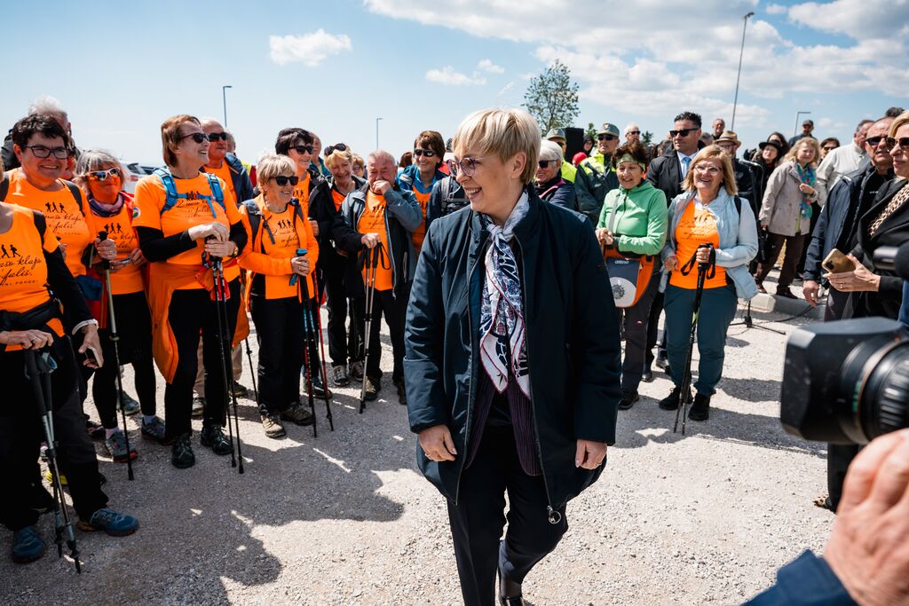 »Ko danes stopamo po teh 103 kilometrih, ne stopamo le po kraškem kamnu, temveč po poti, ki so jo dobesedno tlakovale roke več kot 6.000 prostovoljcev,« je na slovesnosti ob odprtju edinstvene daljinske pohodniške poti, ki so jo obogatili Damjana Golavšek, vokalni trio Le Dive, Paola Rossato, NOVA Jazz Band, MN Dance Company ter Mladinski pevski zbor OŠ Miren in Moški pevski zbor Anton Klančič, poudarila predsednica države Nataša Pirc Musar.