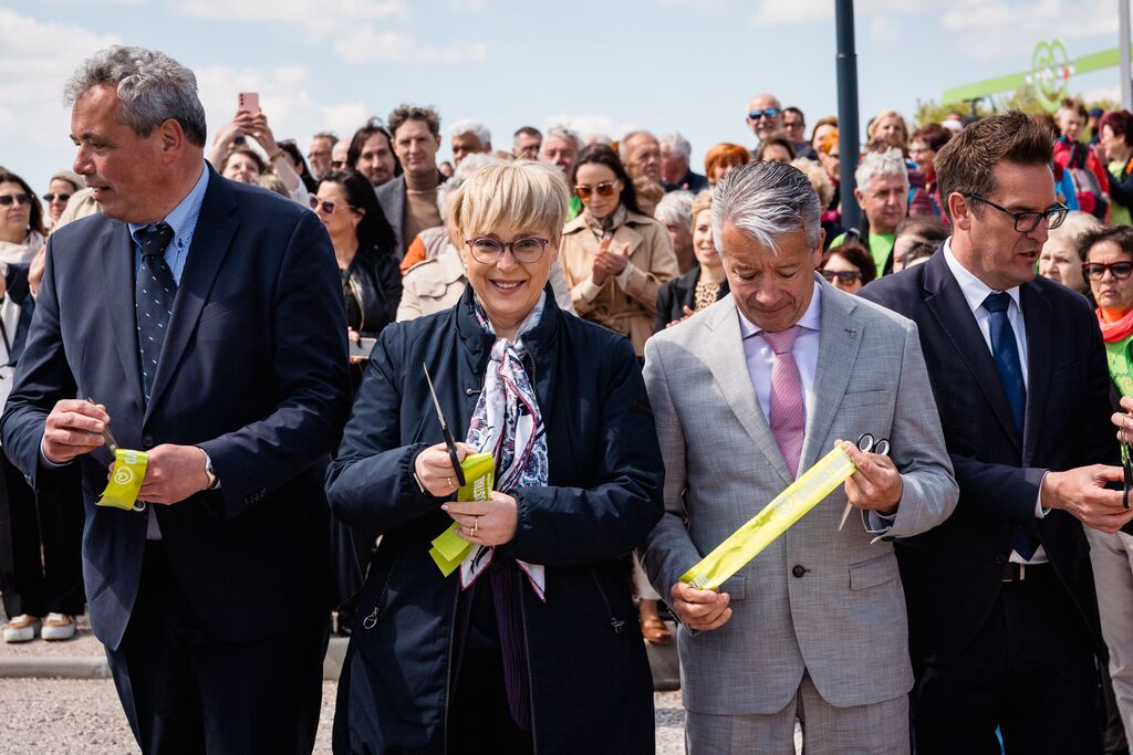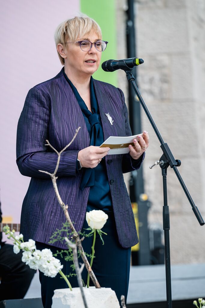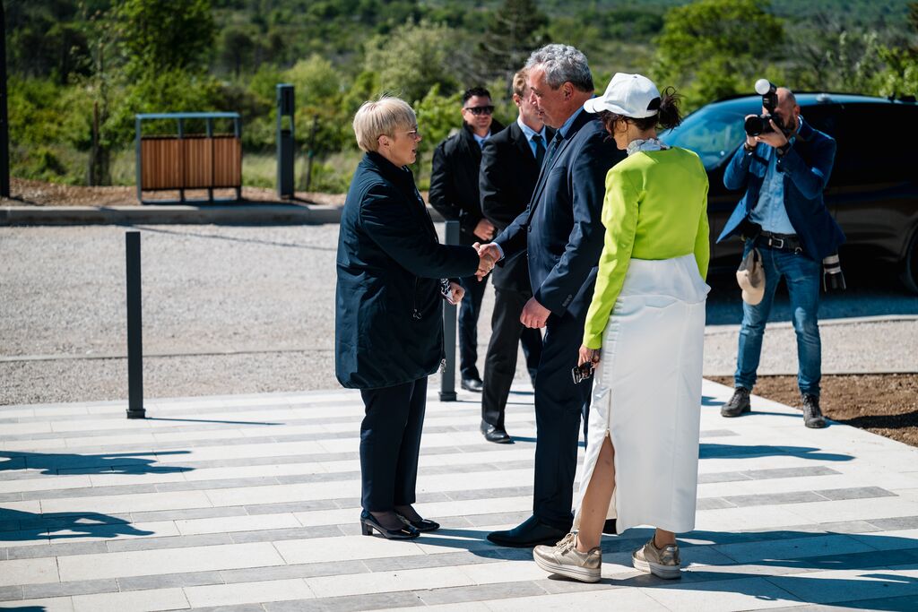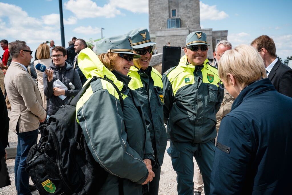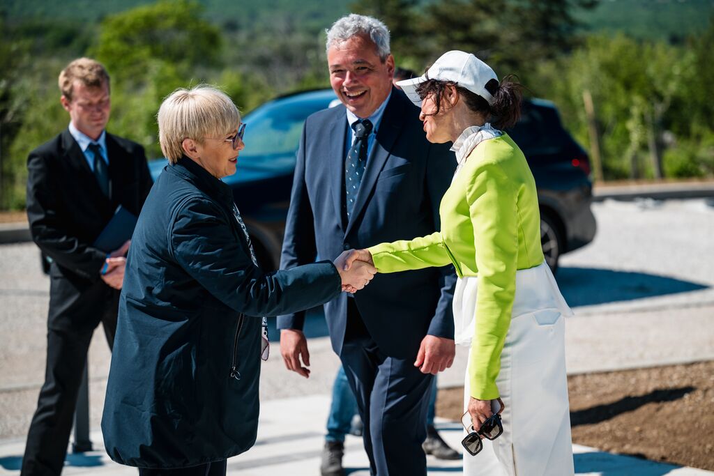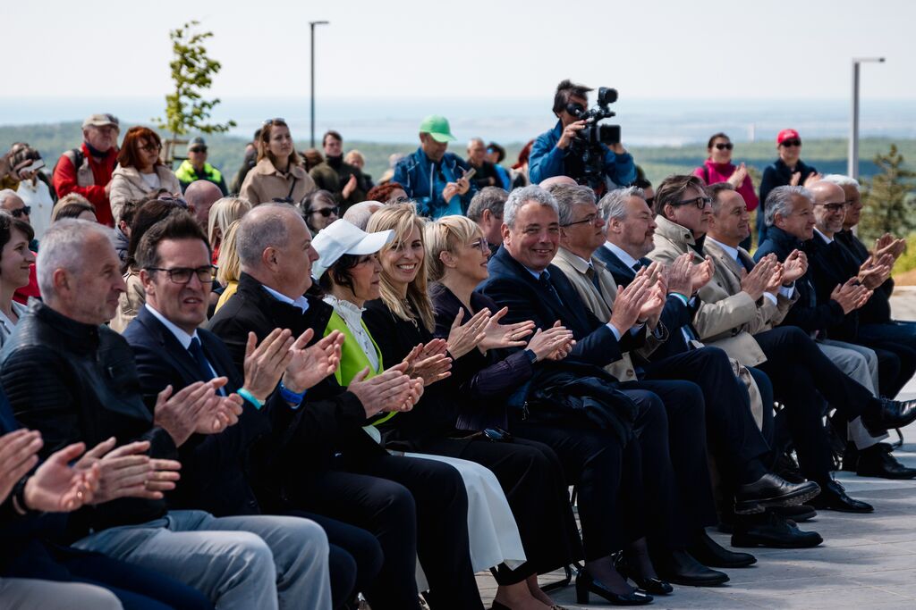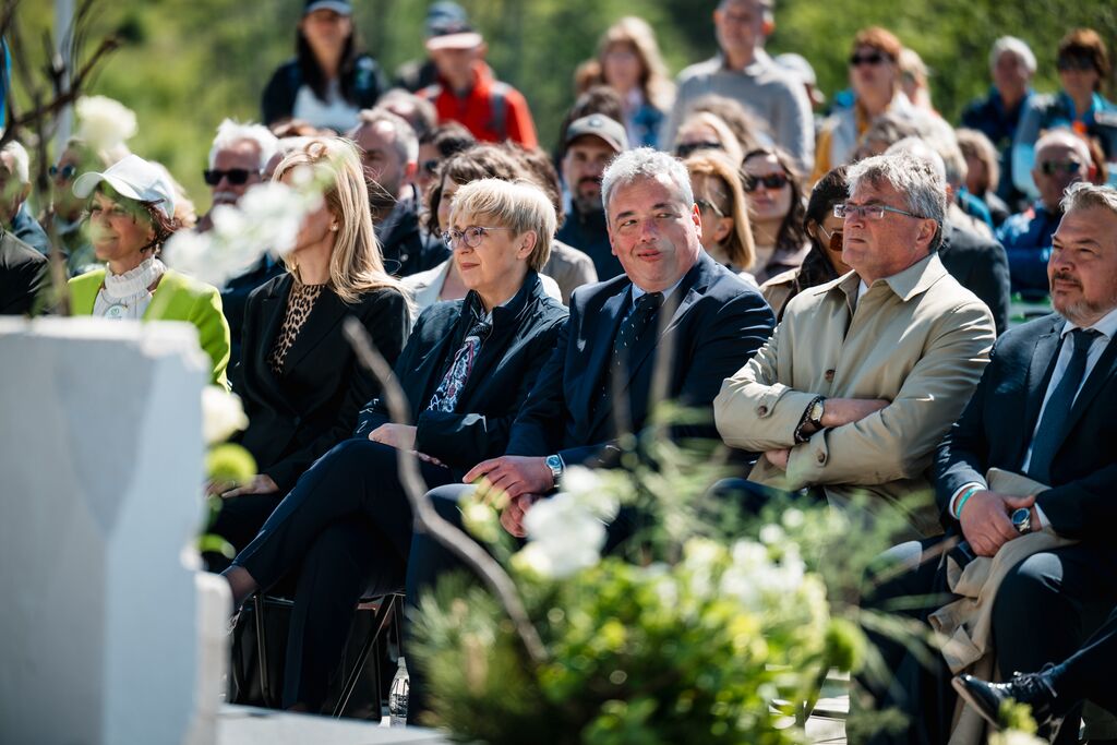 »Ko danes stopamo po teh 103 kilometrih, ne stopamo le po kraškem kamnu, temveč po poti, ki so jo dobesedno tlakovale roke več kot 6.000 prostovoljcev,« je na slovesnosti ob odprtju edinstvene daljinske pohodniške poti, ki so jo obogatili Damjana Golavšek, vokalni trio Le Dive, Paola Rossato, NOVA Jazz Band, MN Dance Company ter Mladinski pevski zbor OŠ Miren in Moški pevski zbor Anton Klančič, poudarila predsednica države Nataša Pirc Musar.