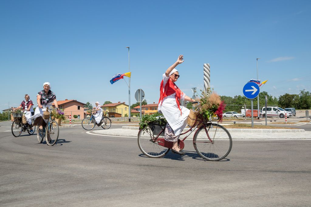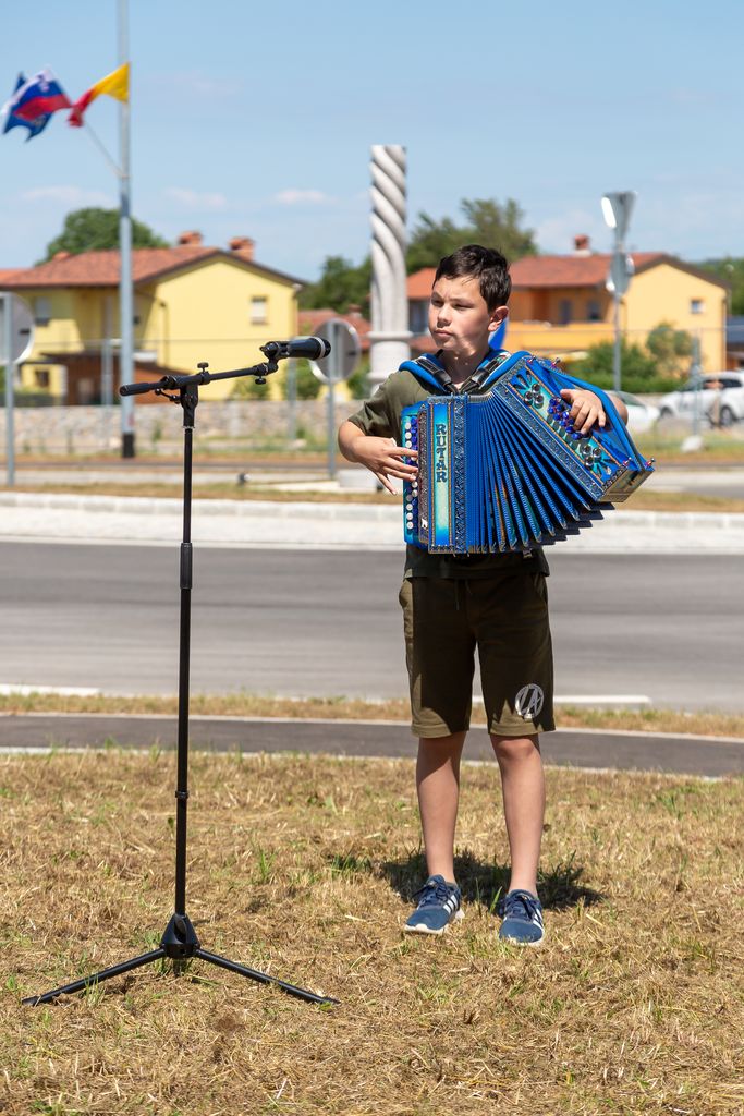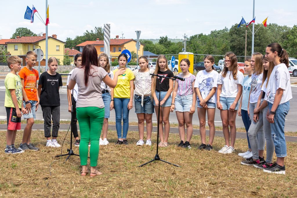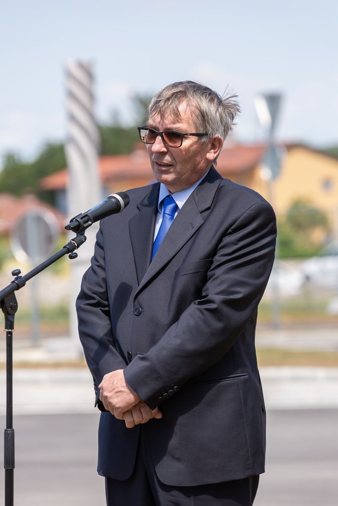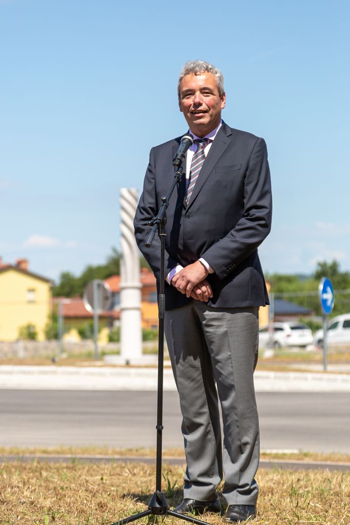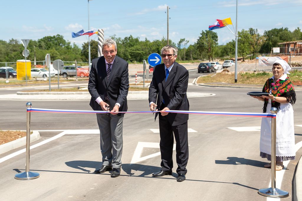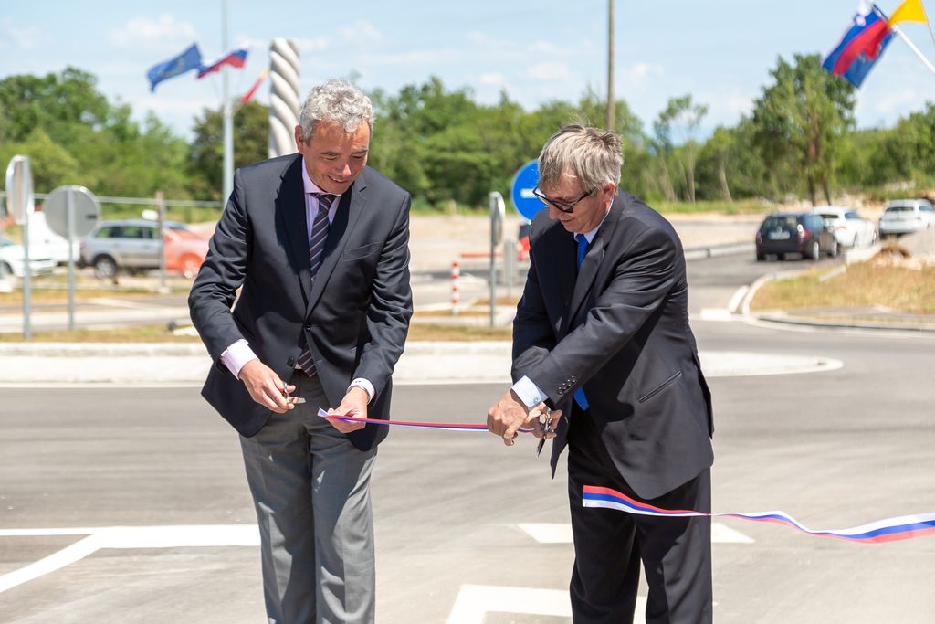 Župan Občine Miren - Kostanjevica Mauricij Humar in vršilec dolžnosti direktorja Direkcije RS za infrastrukturo Bojan Tičar sta v torek, 14. junija, slavnostno predala namenu novourejen odsek regionalne ceste Opatje selo–Komen, ki vključuje tudi novo krožišče.