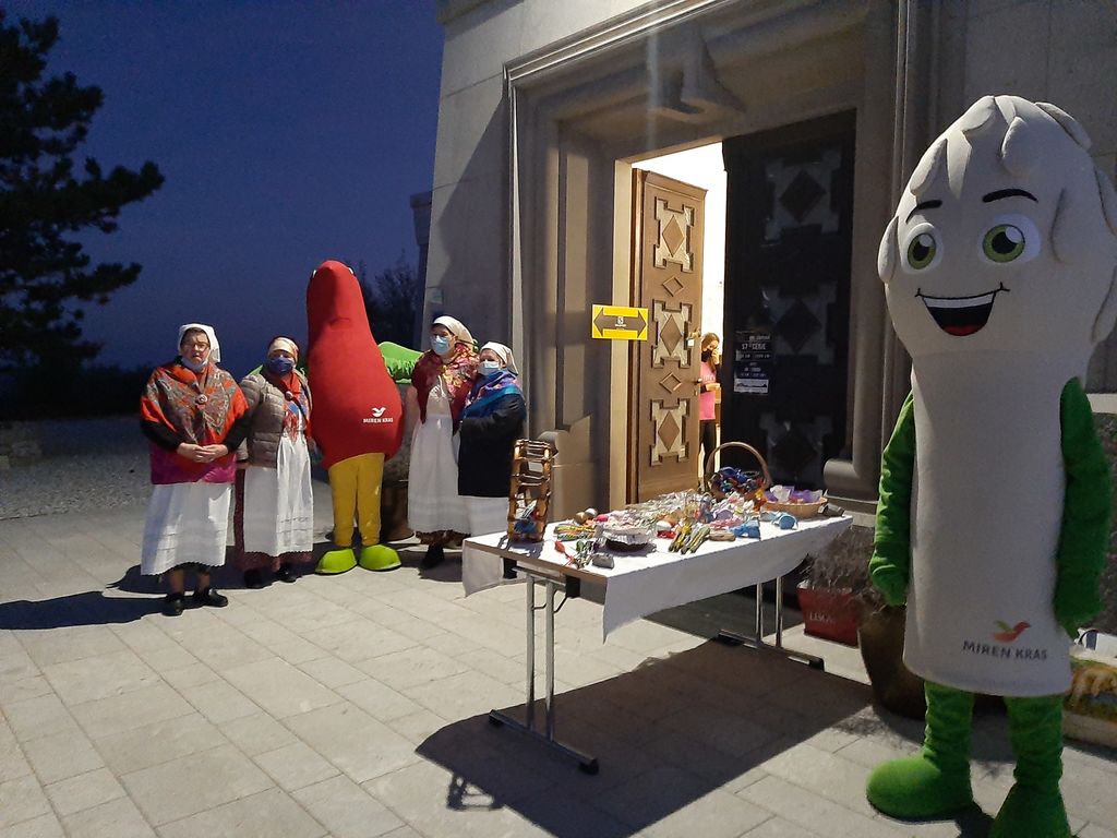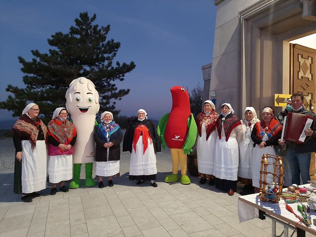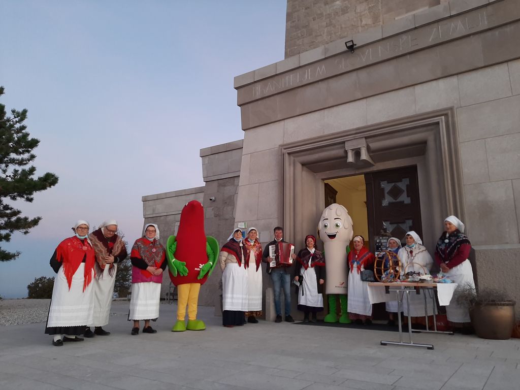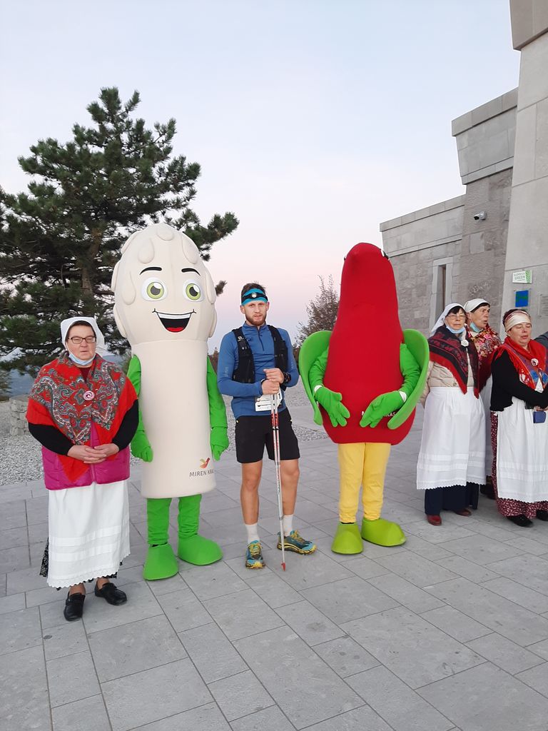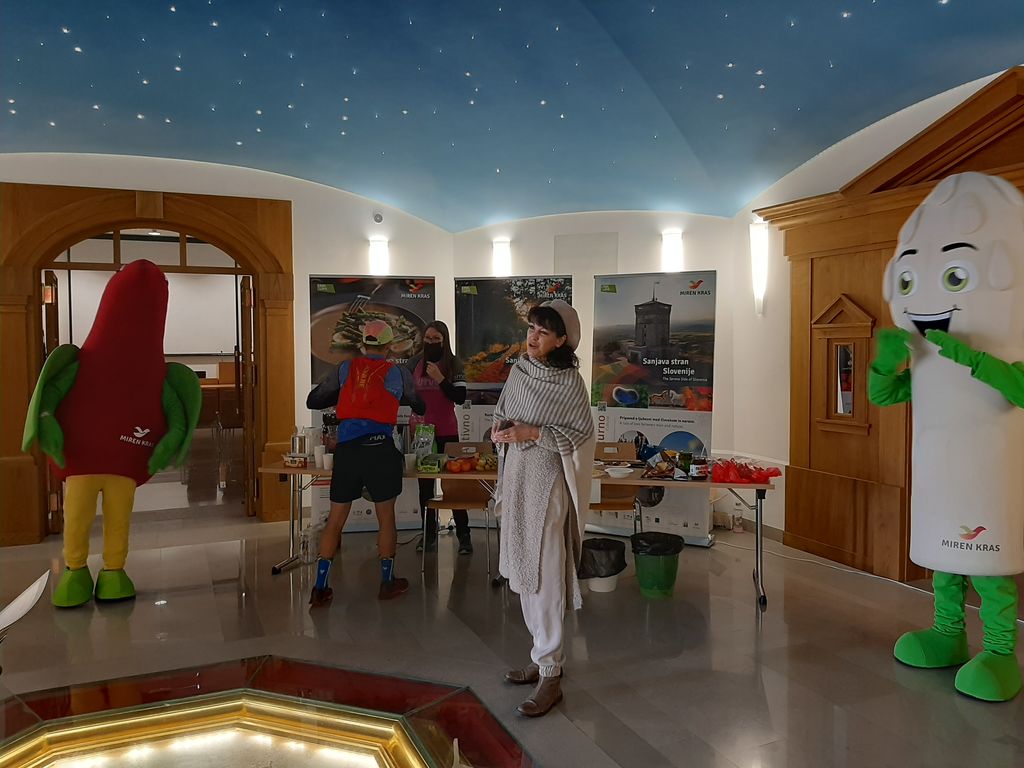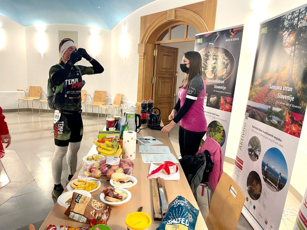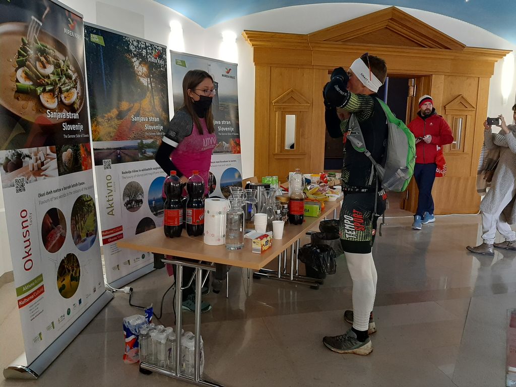 Na 93 kilometru so se tekačice in tekači okrepčali s pijačo, sadjem in prigrizki, ki jih je zagotovil organizator Ultra Trail Vipava Valley, za prijazno motivacijsko dobrodošlico pa so poskrbele v noše oblečene Žbrince v družbi Boža Lebana in njegove harmonike ter nepogrešljivih maskot Mirke in Beluška.