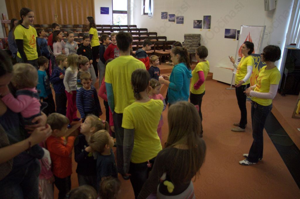 Vsako jutro nam je družina Praznik zaigrala delček njihovega vsakdana, tako smo teme lažje prenesli v naše življenje. Ugotovili smo da smo Bogu lahko hvaležni v majhnih, na prvi pogled neopaznih in nam samoumevnih stvareh, na primer to, da imamo dom, starše, družino, roke, oči, ušesa, hrano, toplo posteljo :) , … Enako smo ugotovili tudi pri pričevanju, vsi takoj pomislimo na to, da bi se mogli v javnosti izpostavljati, oznanjati in pridigati. Pa ni tako, pričujemo lahko že s preprostimi in vsakdanjimi dobrimi deli, s tem da bližnjim pokažemo, da je delati dobro koristno in da se ob tem dobro počutimo, na primer da pospravimo igrače, naredimo domačo nalogo, pojemo vse, kar si damo na krožnik, premagujemo lenobo, se ne zmerjamo, …