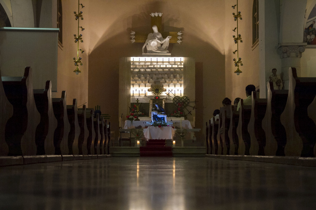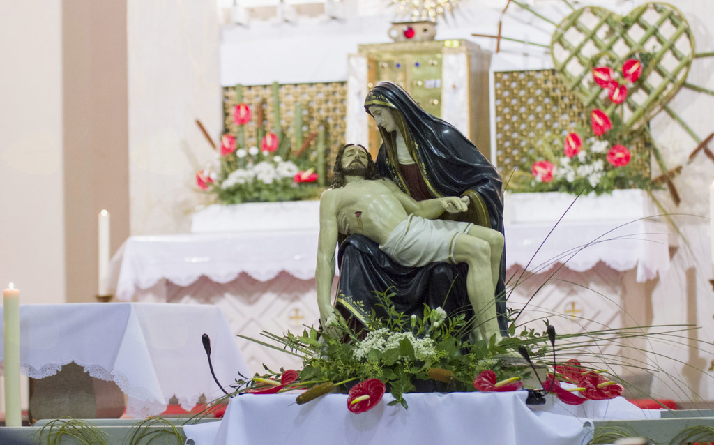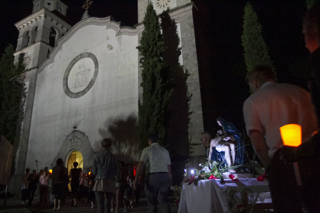 In že je bila sobota zvečer, ko smo se zbrali pri sveti maši v slovesno okrašeni cerkvi. K premišljevanju Marijine žalosti nas je vabilo veliko srce s sedmimi meči na glavnem oltarju ter kip Matere Božje z mrtvim Sinom v naročju pred daritvenim oltarjem. Vzdušje je bilo praznično in spokojno. Med nami je bila Mama, ki nas sprejema in razume. Pobožno vzdušje se je nadaljevalo tudi po sveti maši, ko so možje ponesli Marijin kip po Gradu, verna množica pa je v procesiji za njimi pela litanije Matere Božje ter pesem Mati žalostna. Svetloba svečk in melodija pesmi sta se skupaj z našimi tihimi prošnjami dvigala k Mariji v nebo.