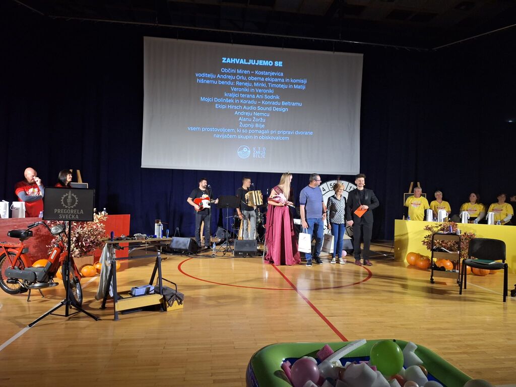 Družabni dogodek so občani in občanke iz vseh krajev naše občine spremljali v soboto, 11. oktobra 2025 zvečer, v Domu krajanov Negovan Nemec v Biljah. Ne le spremljali! Glasno so navijali, peli in se zabavali, med njimi tudi župan Mauricij Humar. V tekmovanju sta se pomerili rdeča in rumena ekipa.