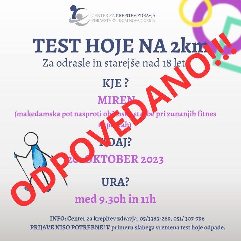 TEST HOJE, zaradi slabega vremena, ODPADE
