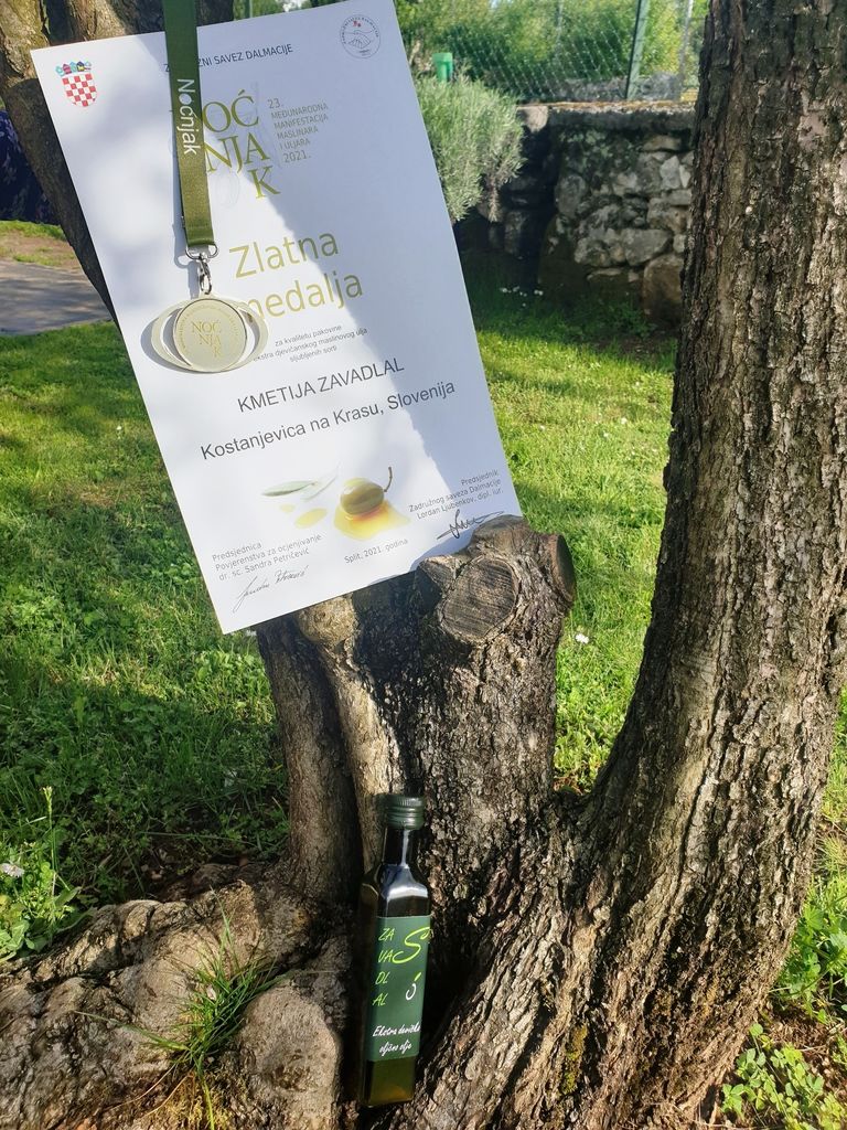 V letošnjem letu smo prvič oddali vzorce olja na ocenjevanje v Split na že 23. mednarodno manifestacijo maslina i uljara. Naše olje je prejelo zlato medaljo. Tako je bil vložen trud z zlatom poplačan.