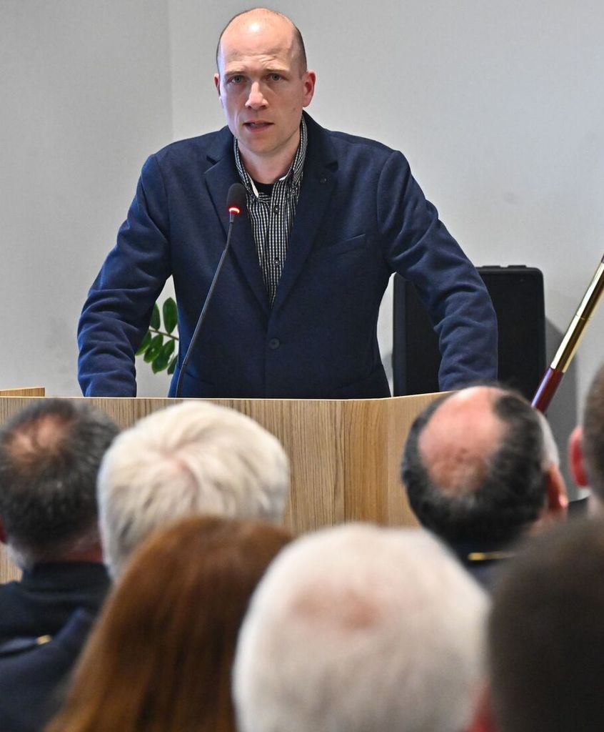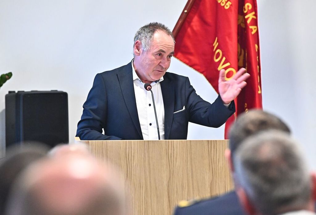 „Lepo pozdravljeni v Mirni Peči. Bi vas že prej z veseljem povabili na kako skupščino, a nismo imeli primernih prostorov, zdaj jih imamo. Zato smo veseli in počaščeni, da smo vas tokrat lahko sprejeli. Verjamem, da ni enostavno voditi tako organizacijo. A je lahko tudi enostavno – če imamo vsi isti cilj, potem tudi težave, ki nastanejo, hitro rešimo. Za delovanje so potrebne tudi finance. Verjamem, da bomo še naprej podpirali gasilce. Brez krovne organizacije, to je Gasilske zveze Novo mesto, ne bi bilo takega razvoja gasilstva: začenši s tekmovanji in izobraževanji. To je v današnjih časih, ob takem napredku, še kako pomembno. Če ne bi bilo tako kvalitetnega izobraževanja, se marsikaterega požara ne bi mogli gasilci varno udeležiti in ustrezno posredovati. Male občine, kot smo tudi mi, se še kako dobro zavedamo, kaj pomenijo za nas gasilci. Pri nas ne moreš izpeljati dogodka brez gasilcev. Pa ne le za posredovanje v sili: gasilci so še marsikaj več: v vaseh in krajih so tista društva, ki ljudi držijo skupaj. Če bomo ohranili to pripadnost in humanost, potem nam bo bistveno lažje na tem ljubem svetu. Sem pa tudi vesel: kot sem slišal v poročilo vaše zveze, vlada veliko zanimanje pri mladih za gasilstvo. Če bomo mlade zastrupili z gasilstvom, jih bo nekaj zagotovo ostalo v gasilskih vrstah, kot ste še vi danes. Če to naredimo, smo naredili veliko. Da nam bo vsem lepše in dobro. Še enkrat čestitke in vse ob 70-letnici. Gasilski pozdrav Na pomoč!“ je ob tej priložnosti povedal Andrej Kastelic, župan Občine Mirna Peč. Ob tej priložnosti je župan prejel tudi zahvalo, ki mu je izročilo vodstvo Gasilske zveze Novo mesto.