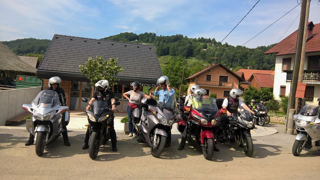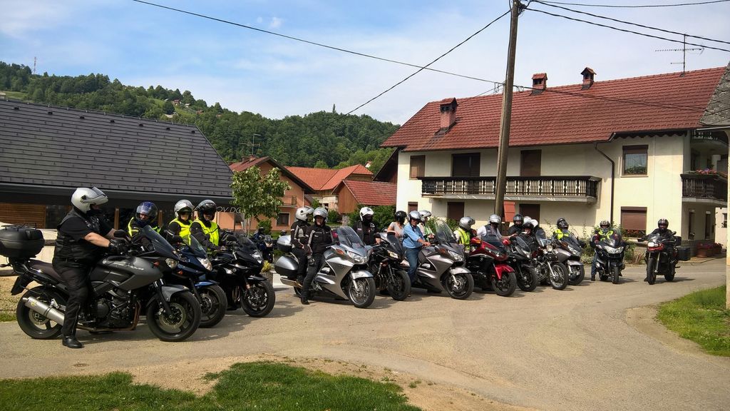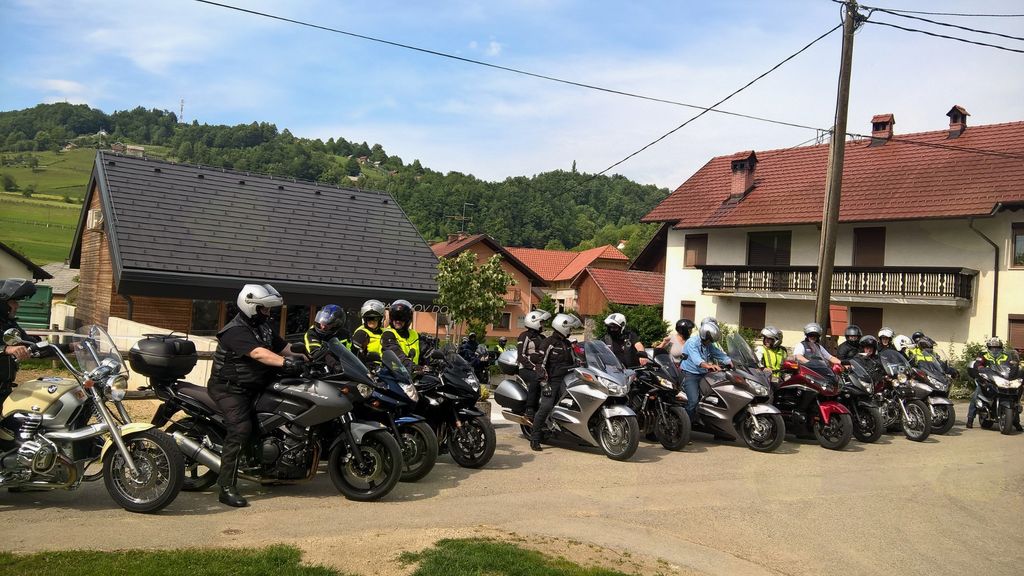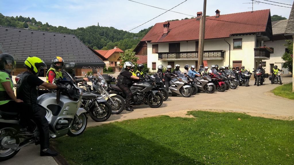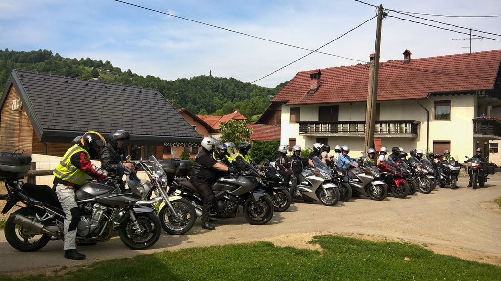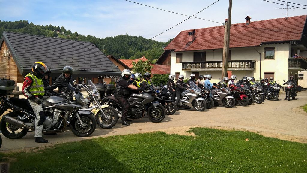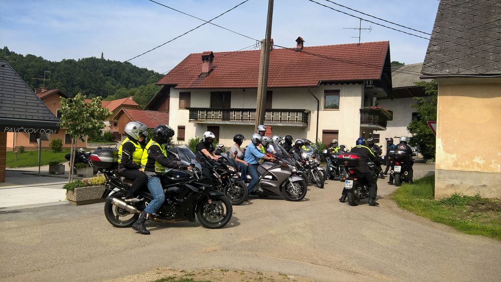 Člani društva Motoristi za motoriste so za skupinsko fotografijo postavili pred Pavčkov dom sredi vasi svoje jeklene lepotce, zatem pa odbrzeli na Mali Kal k spomeniku Lojzeta Slaka in se ustavili še na Barbovi domačiji.