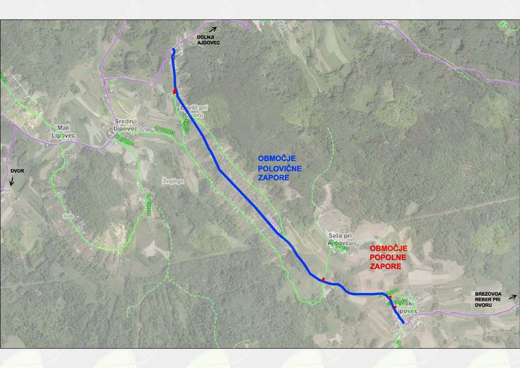 Dela bomo izvajali s popolno zaporo javne poti Podograje – Trnov dol – Sela pri Ajdovcu – Boršt – Sela pri Ajdovcu 7 – Veliki Lipovec – Veliki lipovec povezava in polovično zaporo Veliki Lipovec.
