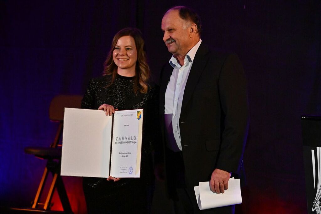 Sledila je podelitev jubilejne nagrade JSKD, ki jo je KUD Mirna Peč izročila Klavdija Kotar, vodja območne izpostave Javni sklad Republike Slovenije za kulturne dejavnosti Novo mesto. V imenu JSKD je Klavdija Kotar izrazila navdušenje in poklon nad aktivnostjo KUD Mirna Peč ter obljubila, da bo JSKD po svojih močeh podpiral delovanje društva tudi v prihodnje.