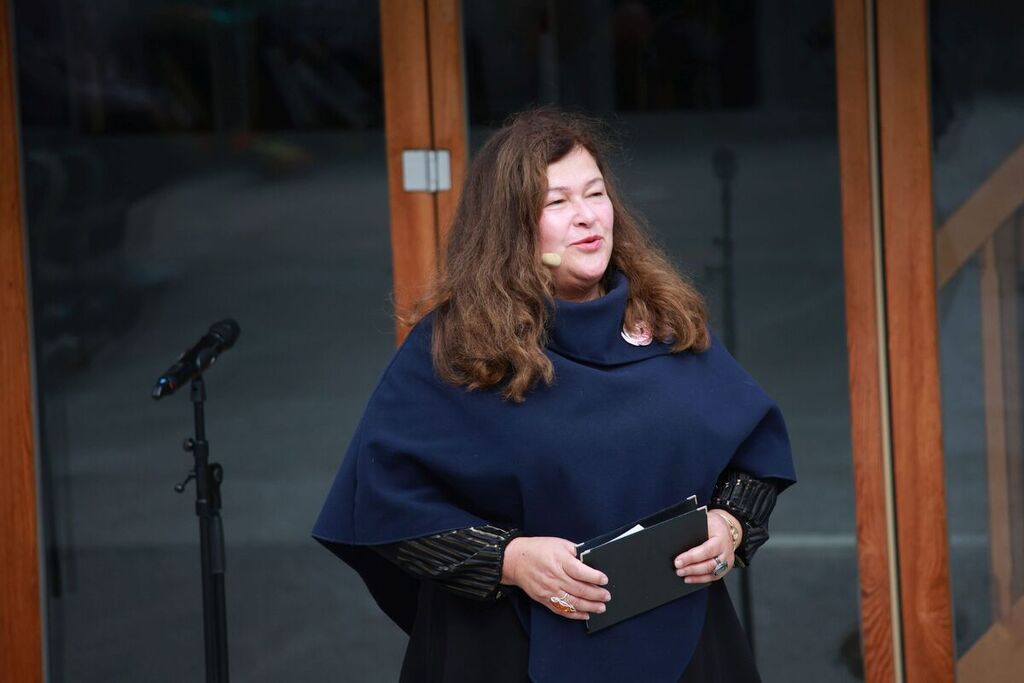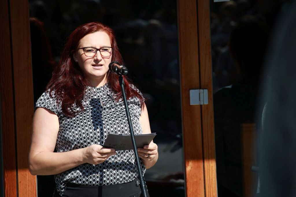 »Pozdravljeni vsi, čestitam vsem nastopajočim – od najmlajših do najstarejših. Odlični ste bili, uživala sem. Čestitam mladi pesnici za čudovito pesem, čestitam tretješolcem za skupinsko recitacijo, pa tudi pevki za dve tako lepo zapeti pesmi. Hvala pevskemu zboru in Ljudmili Bajc. Hvaležna sem, ker ohranjate spomin na Toneta Pavčka in ker radi prihajate v Pavčkov dom in muzej. Najbolj pa me veseli, da ustvarjate, ste radoživi in radovedni. Vesela sem, da vaščani in Občina Mirna Peč tako lepo skrbijo za Pavčkov dom in da otroci radi recitirajo pesmi Toneta Pavčka. Zelo rada pridem sem, saj imam na Šentjurij lepe spomine iz otroštva.«